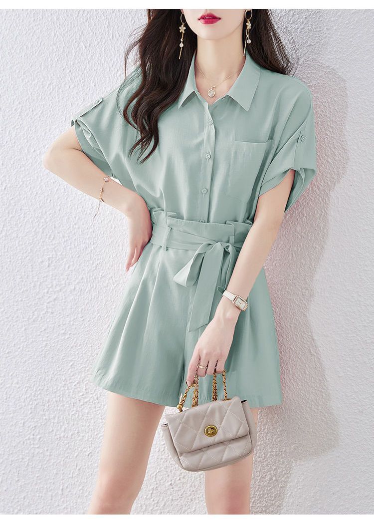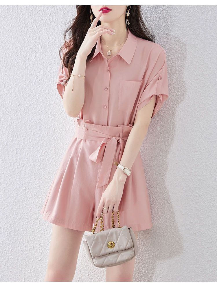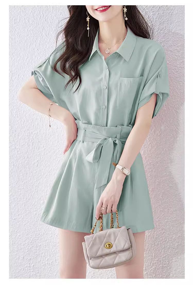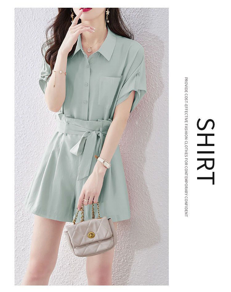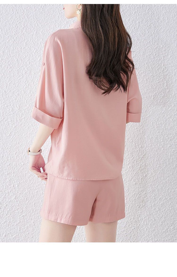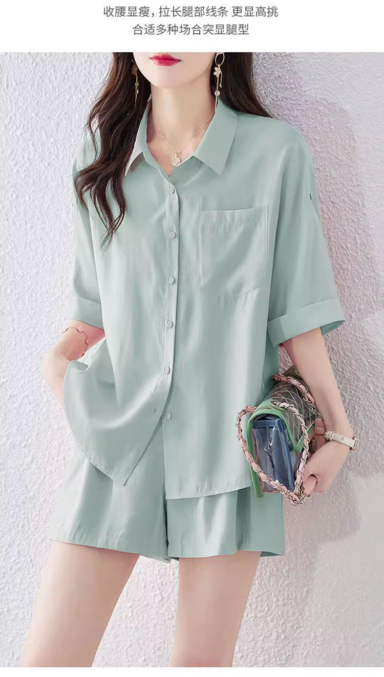 [투피스 세트] 기질 반팔 셔츠 여성의 느슨한 셔츠 디자인 감각 높은 허리 넓은 다리 반바지 패션 세트