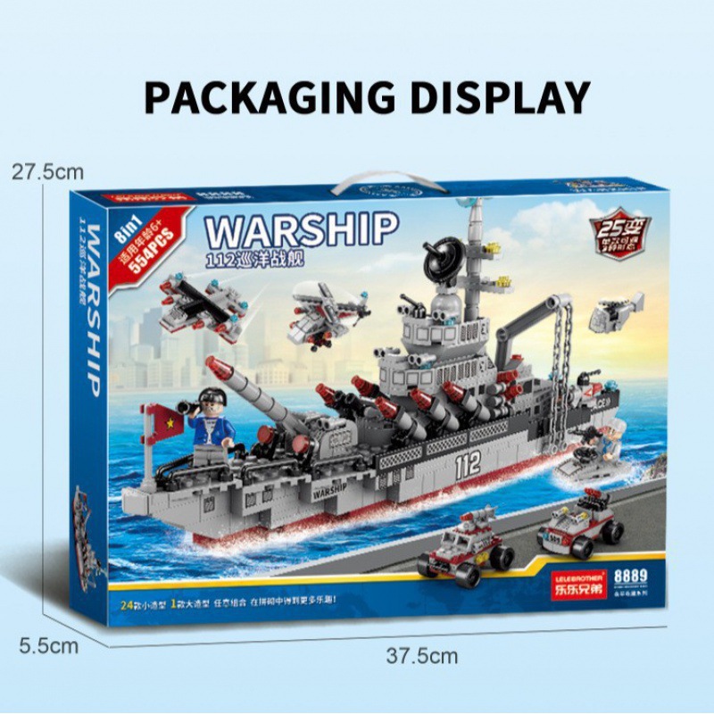 • 대형 74cm 유도 미사일 구축함 + 미니피겨 3개 1704 입자 [명품 선물 상자]