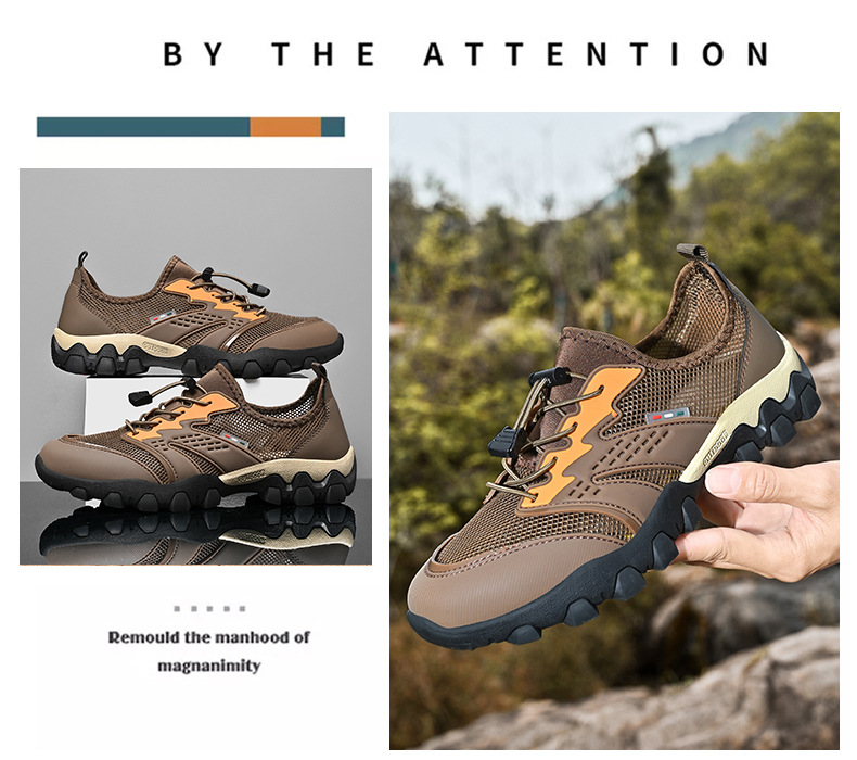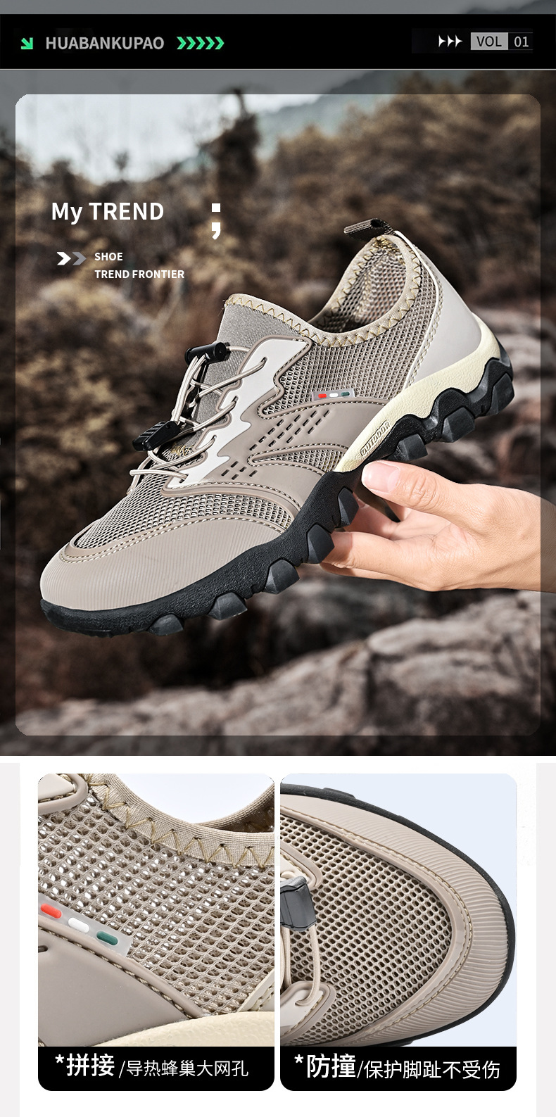 2025 국경 간 여름 통기성 메쉬 남성 신발 스포츠 캐주얼 신발 남성 메쉬 추적 신발 미끄럼 방지 야외 중공 신발