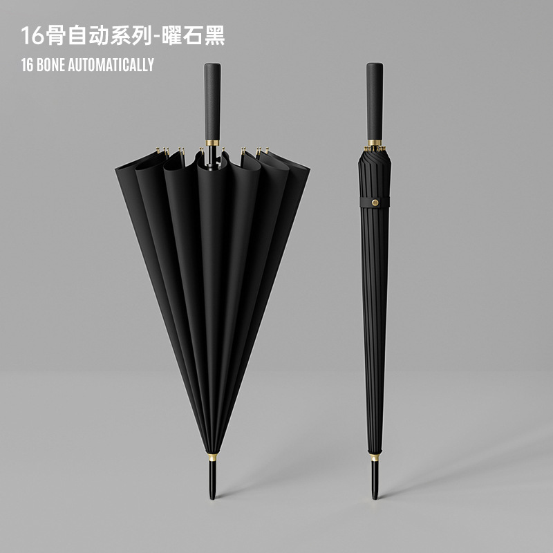 • [총알] 컬러 매칭 직선 손잡이 16본 자동 ~ 흑요석 검정색(우산 커버 제외)