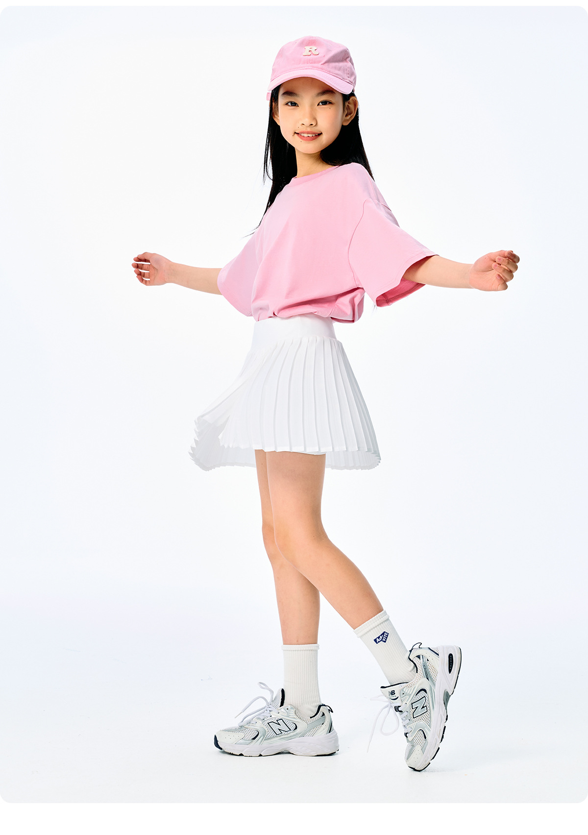 DK 아동복 25 여름 소녀 솔리드 컬러 스포츠 퀵 드라이 스커트 테니스 스커트 어린이 캐주얼 올 매치 플리츠 스커트