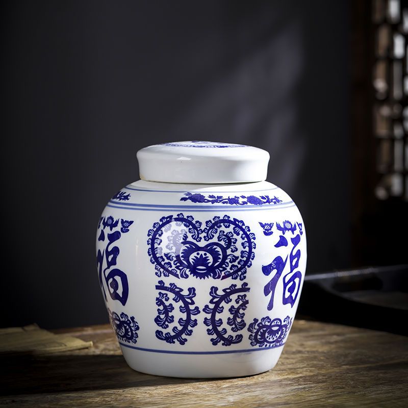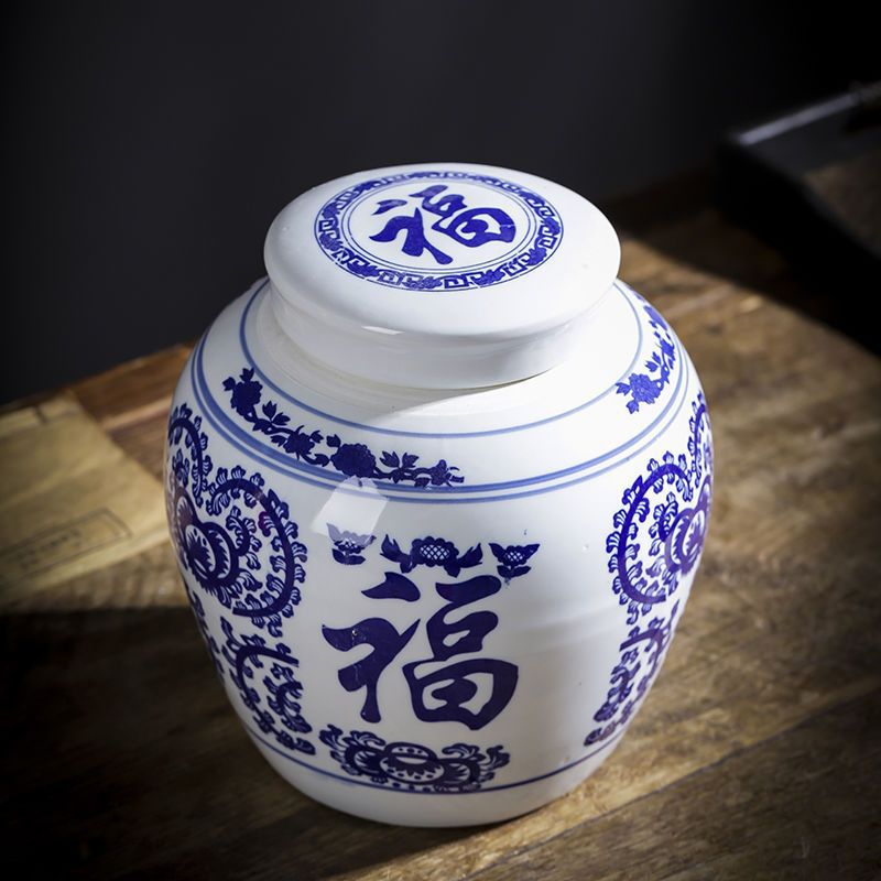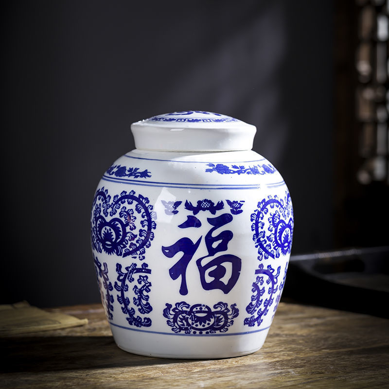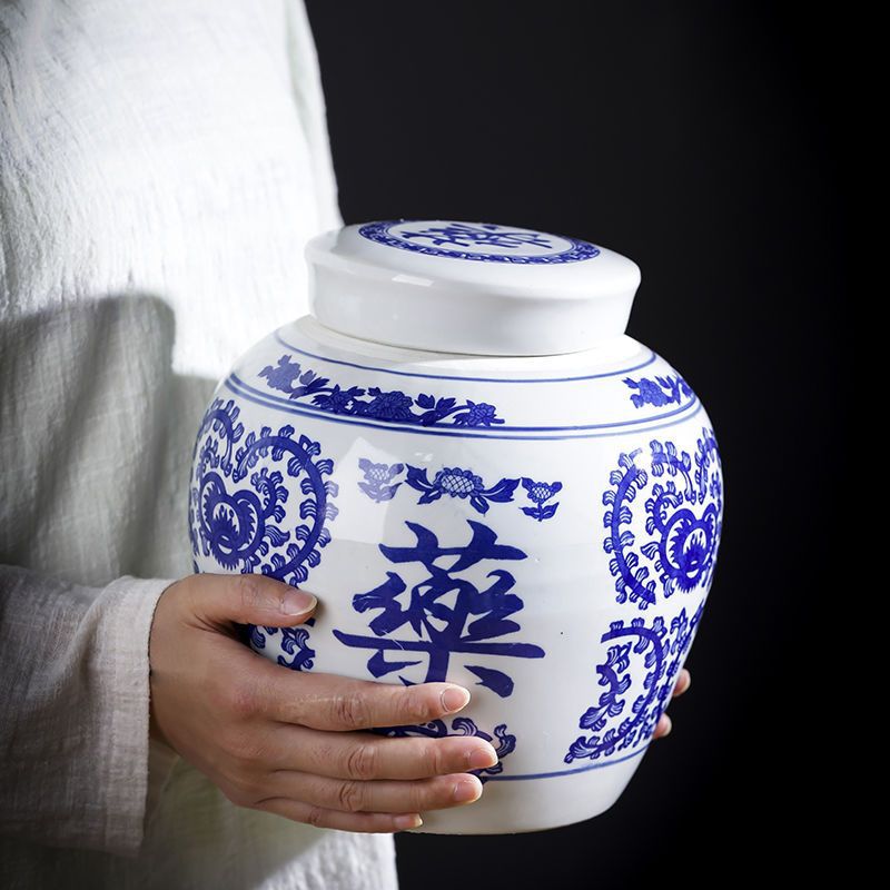 뚜껑이 있는 구식 세라믹 항아리 허브 분말 항아리 골동품 파란색과 흰색 도자기 밀봉 항아리 분말 저장 항아리스토어 가기