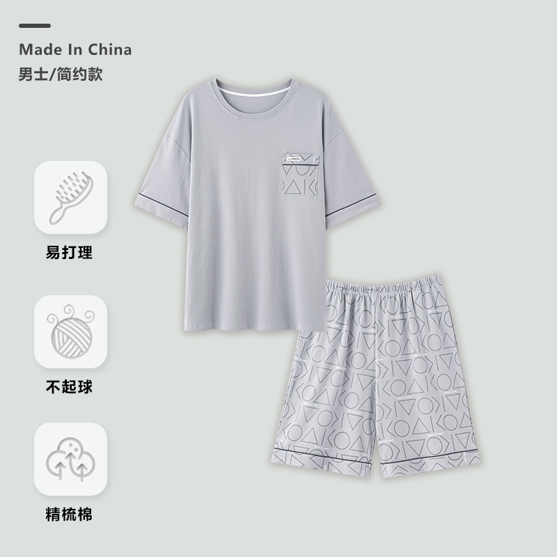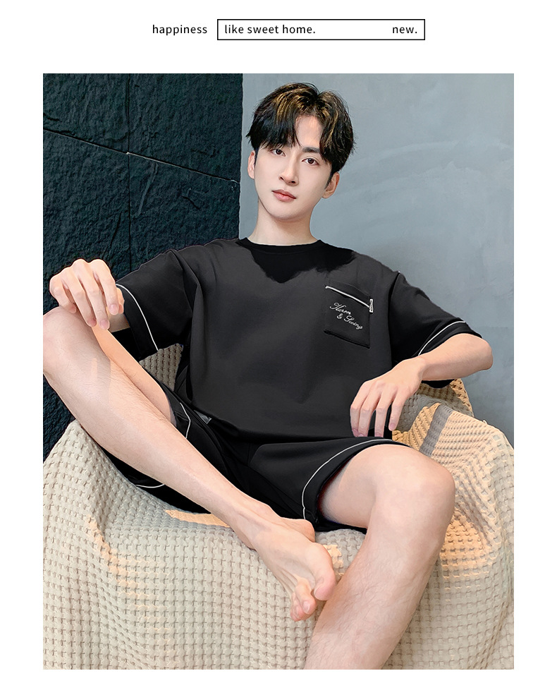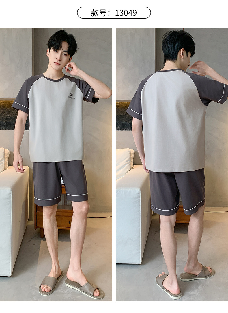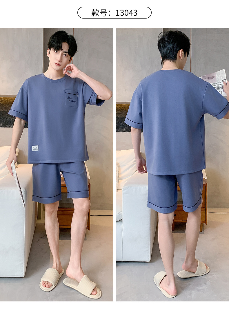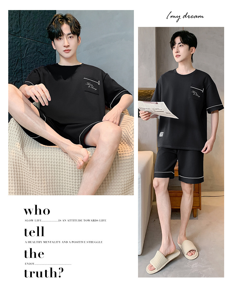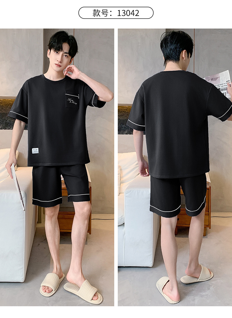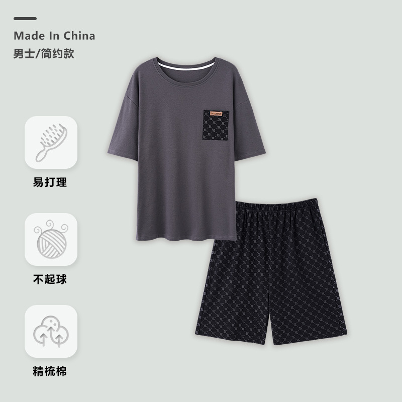 캐주얼 잠옷 남성 봄과 여름 얇은 반팔 쿨 느낌 홈 옷 체크 무늬 플러스 사이즈 반바지 세트 착용 가능