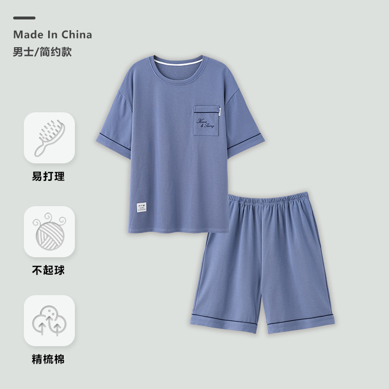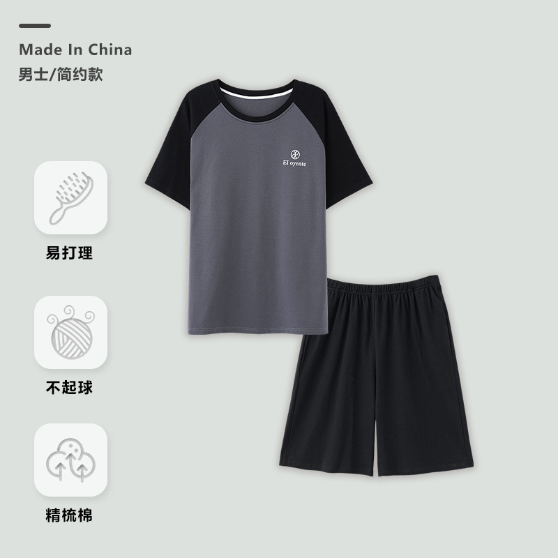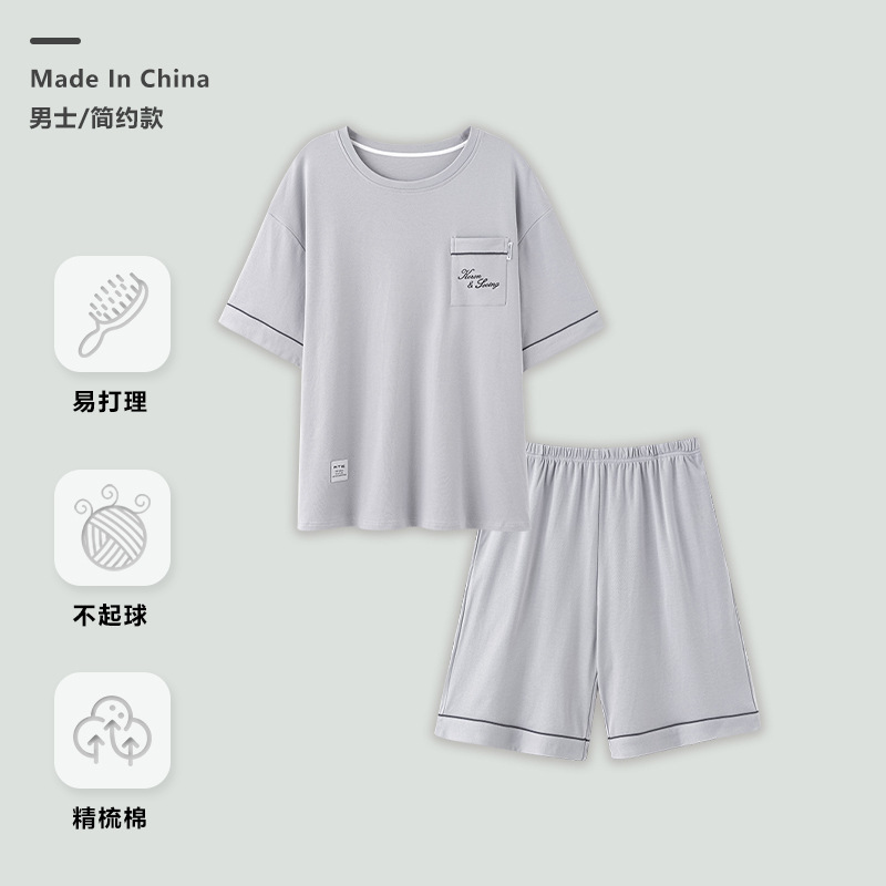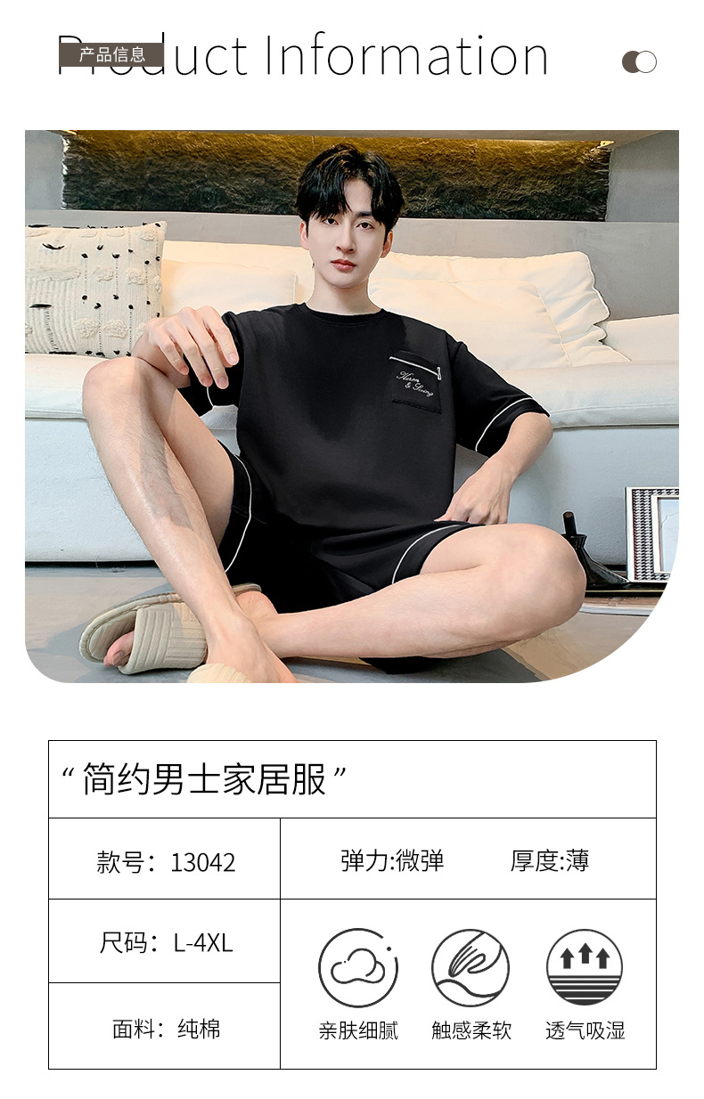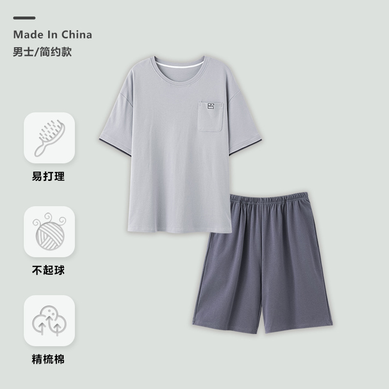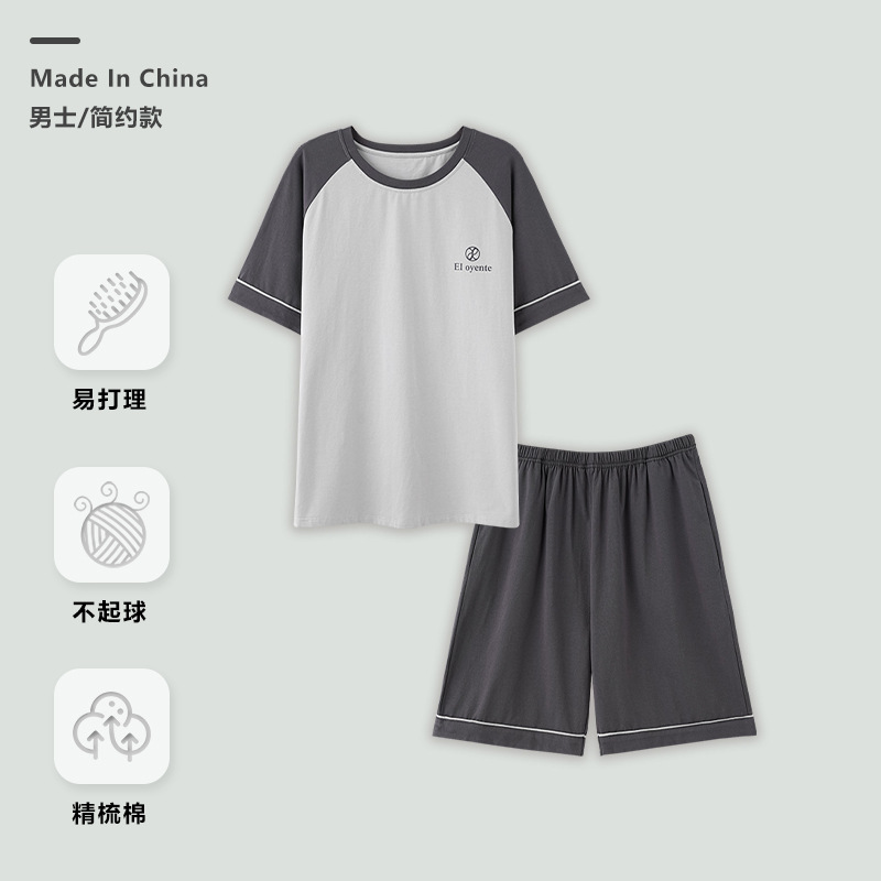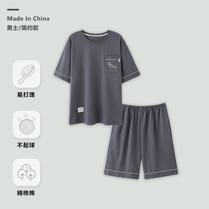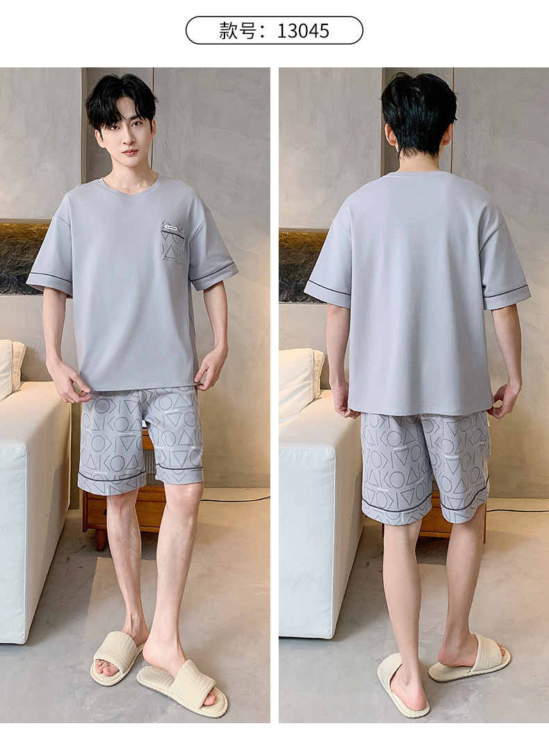 캐주얼 잠옷 남성 봄과 여름 얇은 반팔 쿨 느낌 홈 옷 체크 무늬 플러스 사이즈 반바지 세트 착용 가능
