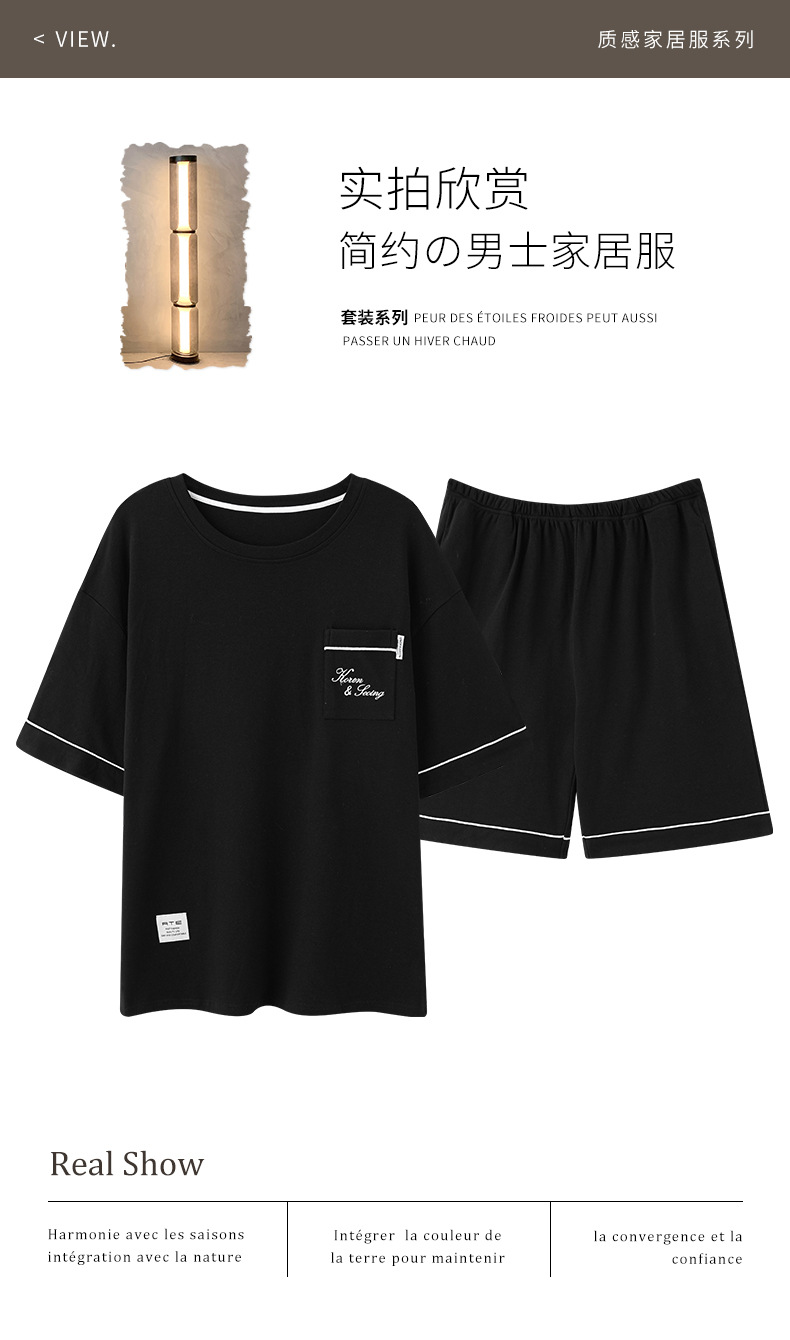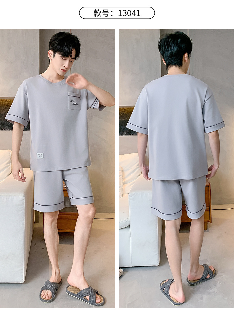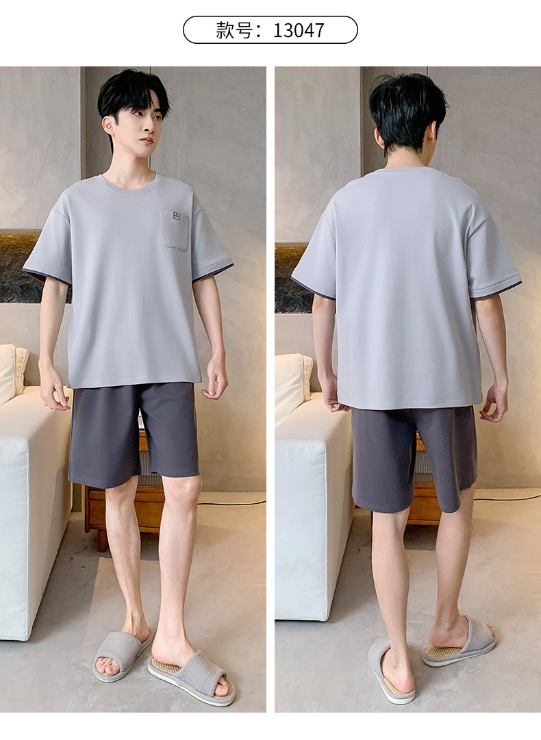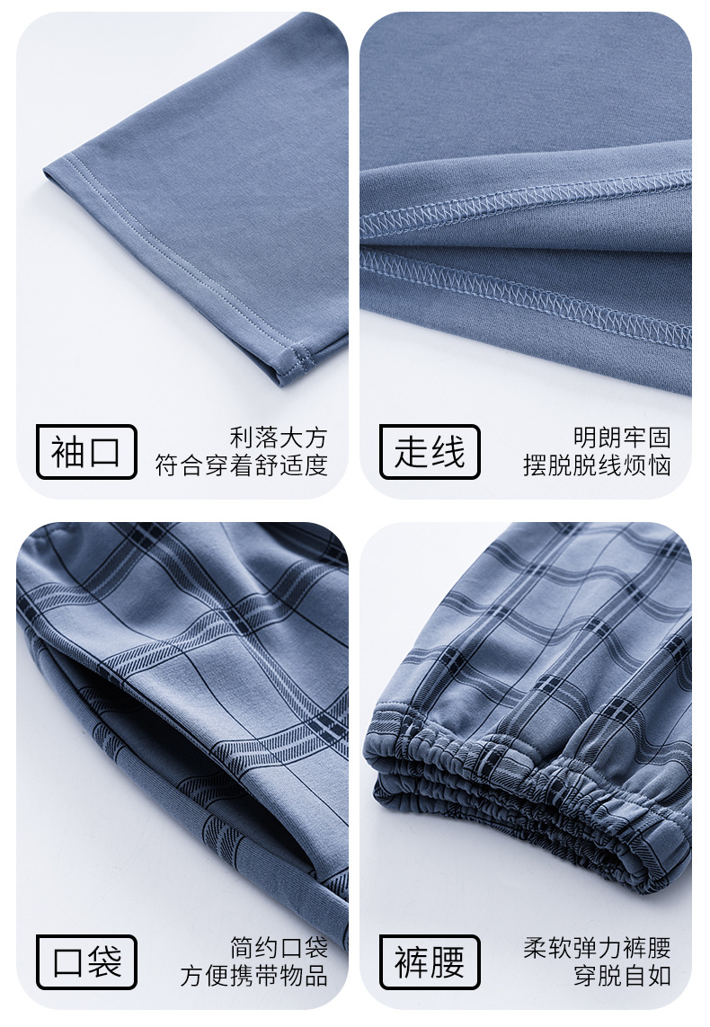 캐주얼 잠옷 남성 봄과 여름 얇은 반팔 쿨 느낌 홈 옷 체크 무늬 플러스 사이즈 반바지 세트 착용 가능스토어 가기