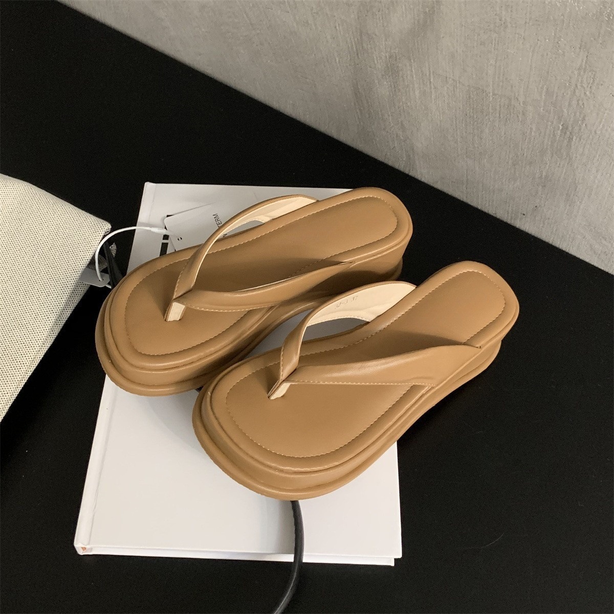 두꺼운 밑창 슬리퍼 여성 여름 나들이 2025 새로운 한국 패션 기질 요정 스타일 웨지 샌들스토어 가기