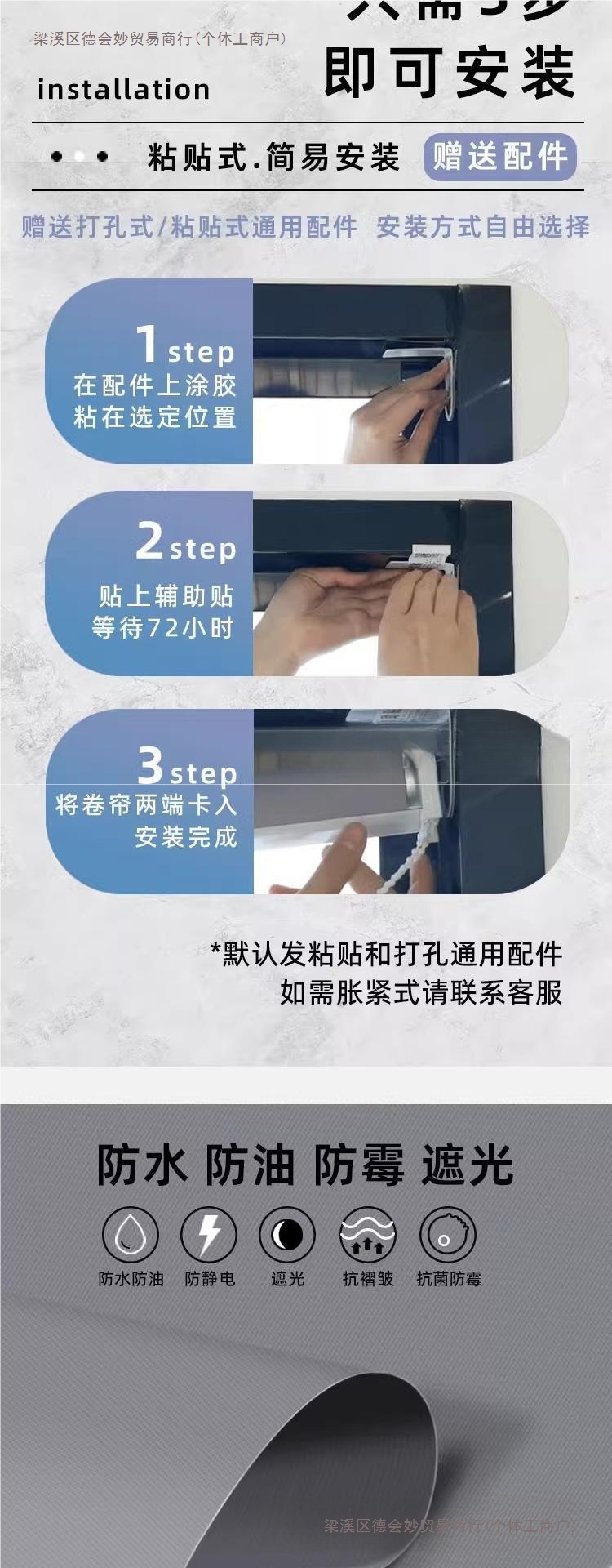 2024 새로운 커튼 차양 롤업 차양 펀치 프리 설치 사무실 전체 음영 화장실 블라인드스토어 가기