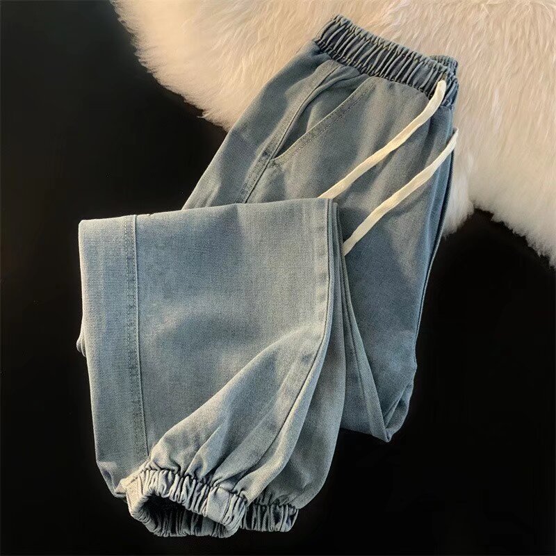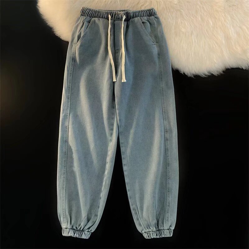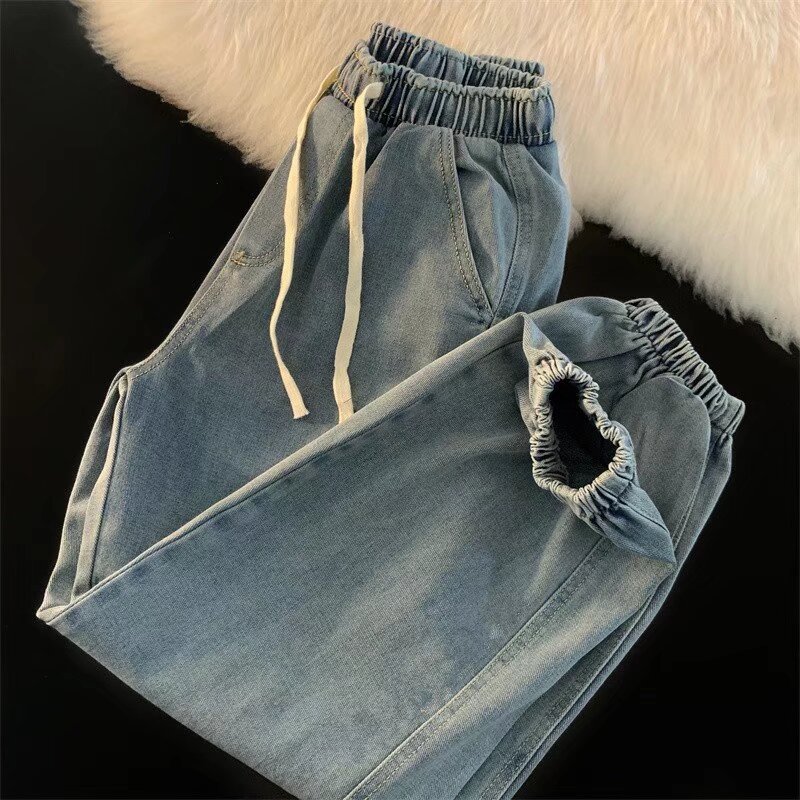 캐주얼 남성용 청바지 Elastomic 허리 데님 바지 남성용 한국 스타일 느슨한 패셔너블 브랜드 스트리트 프라이드 청바지스토어 가기