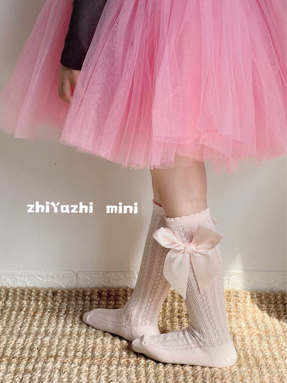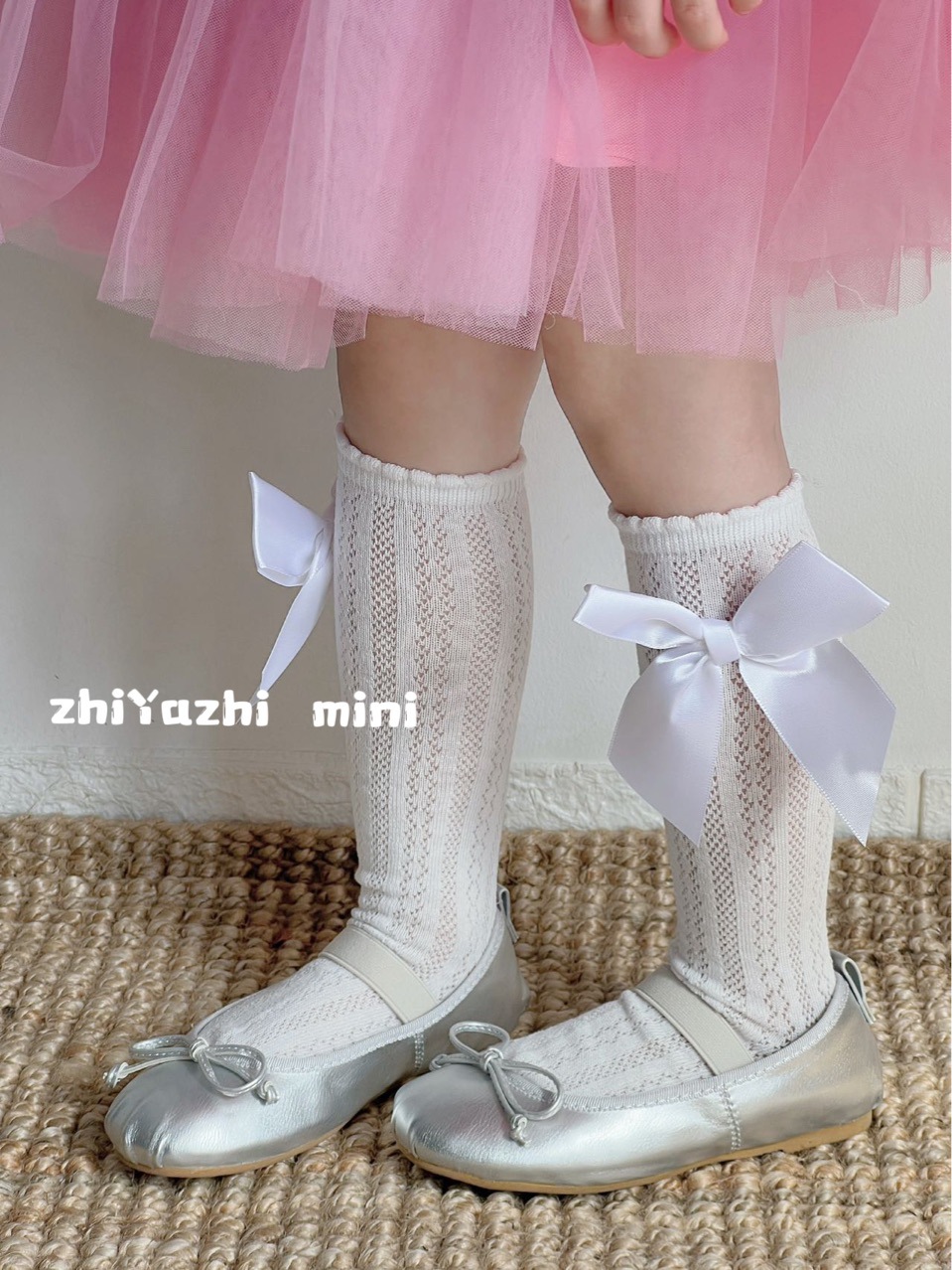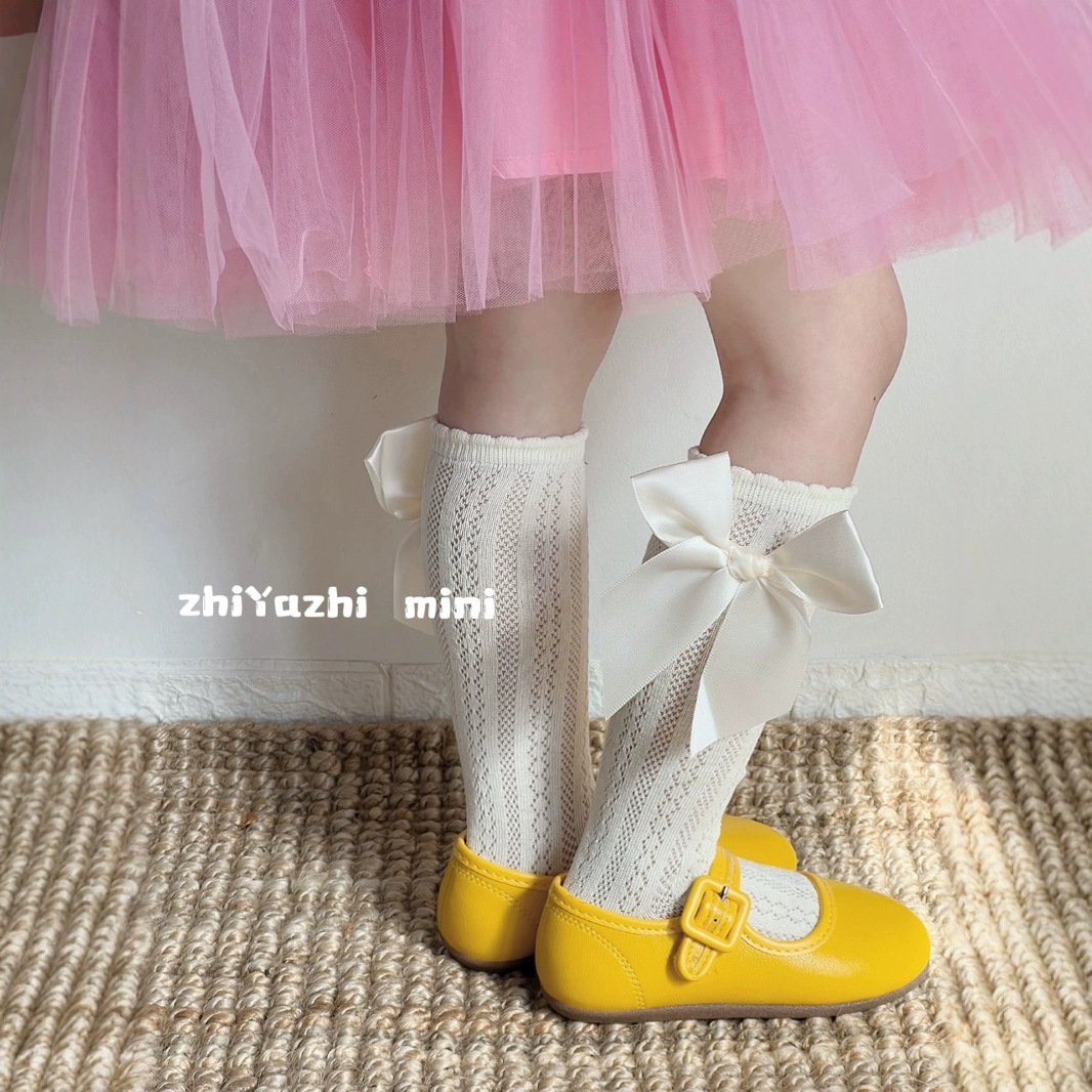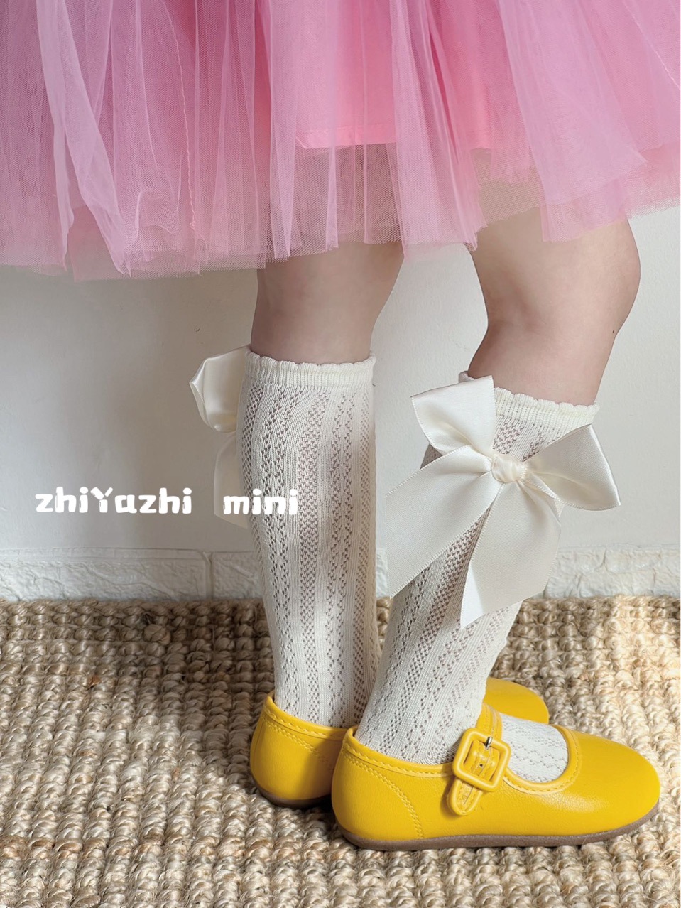 뜨개질 원래 디자인 2025 봄과 여름 스타킹 여성 아기 양말 큰 활 종아리 양말 도매스토어 가기
