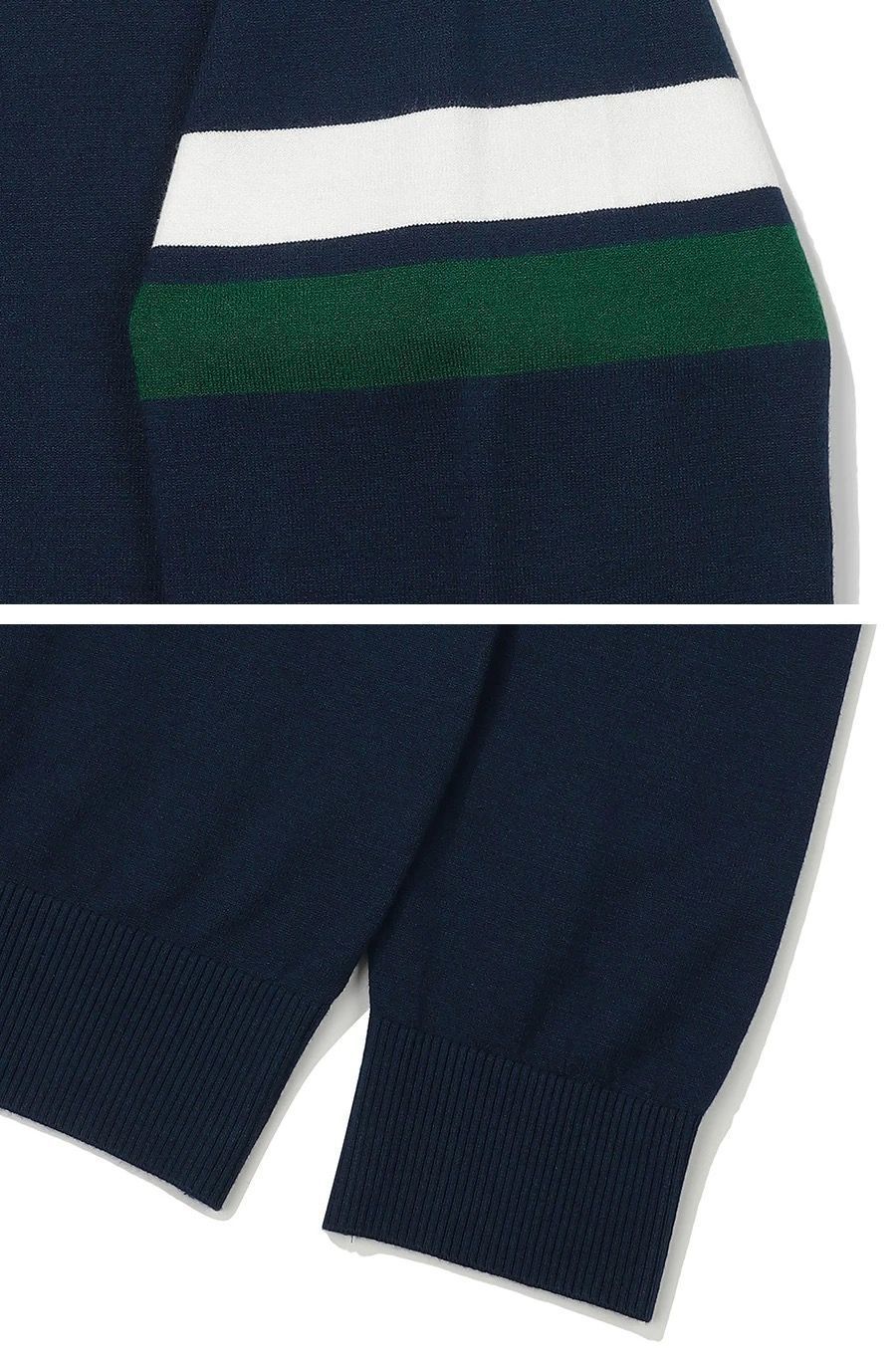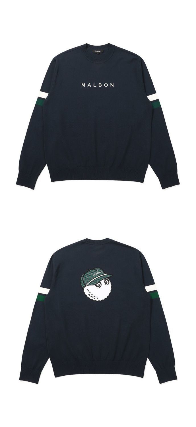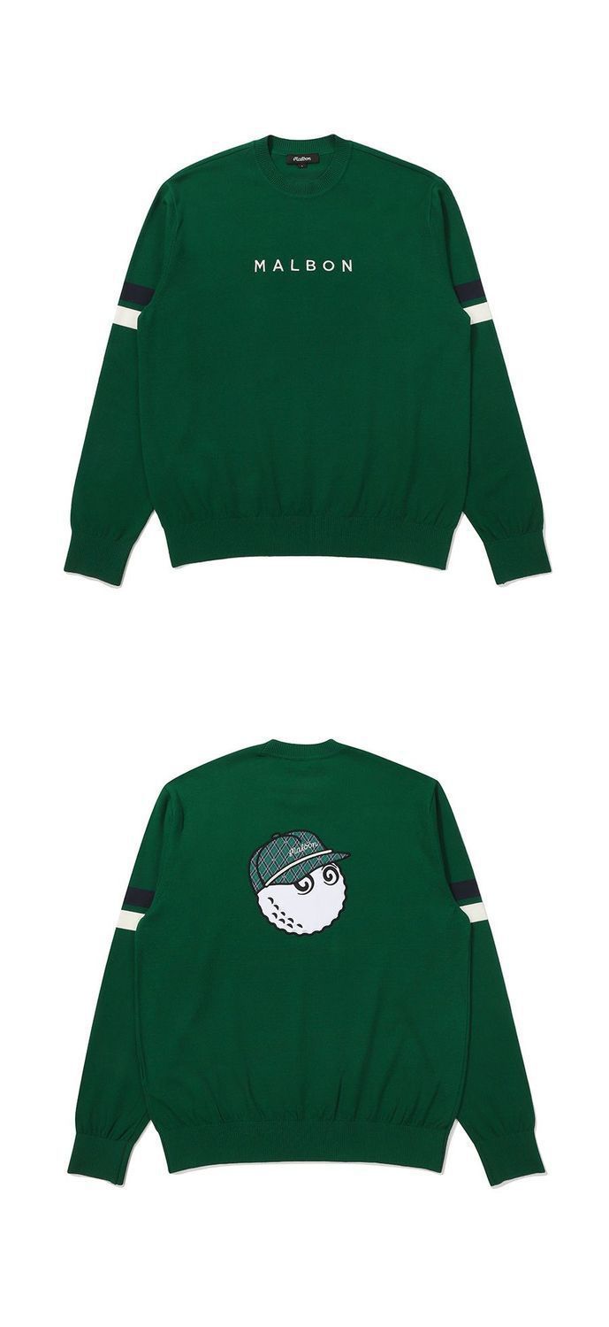 한국 골프웨어 24 가을 겨울 남성 GOLF 로고 가로 스트라이프 라운드 넥 풀오버 고탄성 스웨터