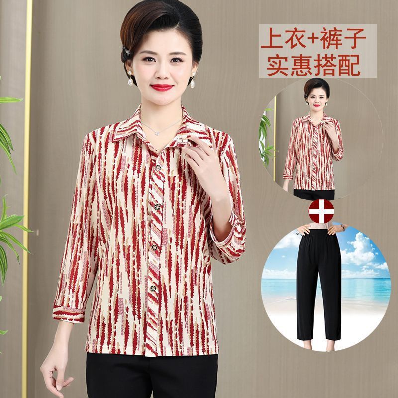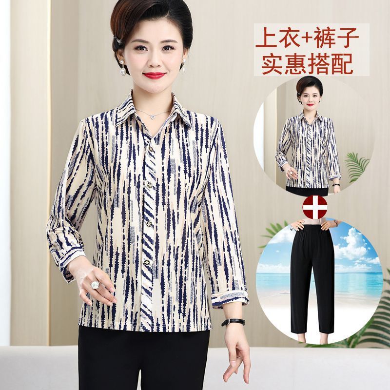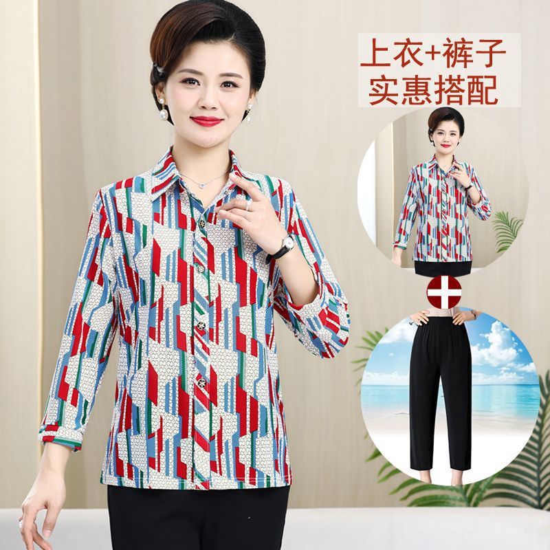 중년 및 노인을위한 셔츠 카디건 여름 아이스 실크 얇은 어머니의 봄과 가을 최고의 여성 셔츠 9 소매 셔츠스토어 가기