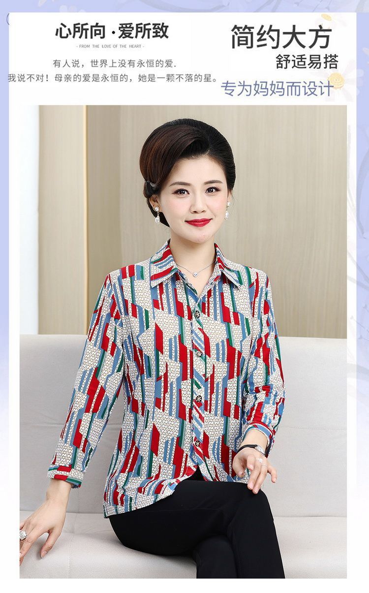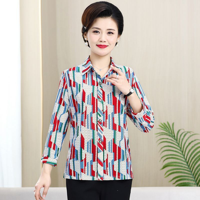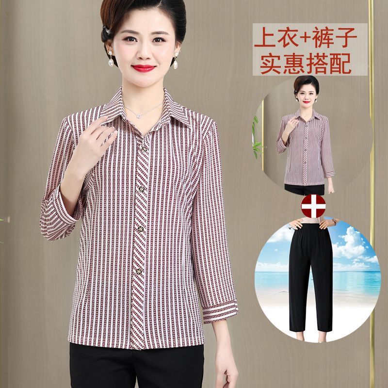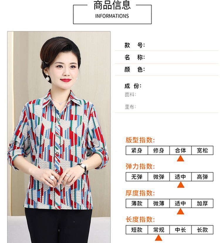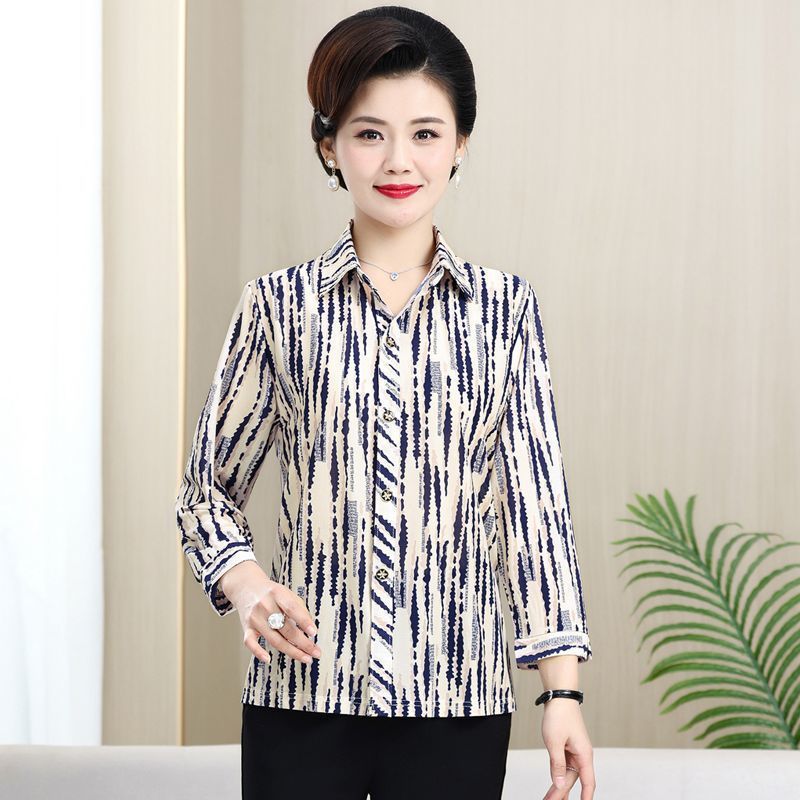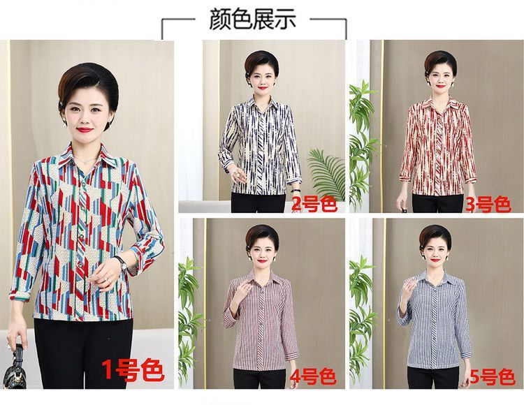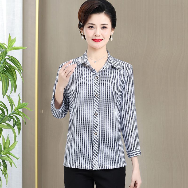 중년 및 노인을위한 셔츠 카디건 여름 아이스 실크 얇은 어머니의 봄과 가을 최고의 여성 셔츠 9 소매 셔츠