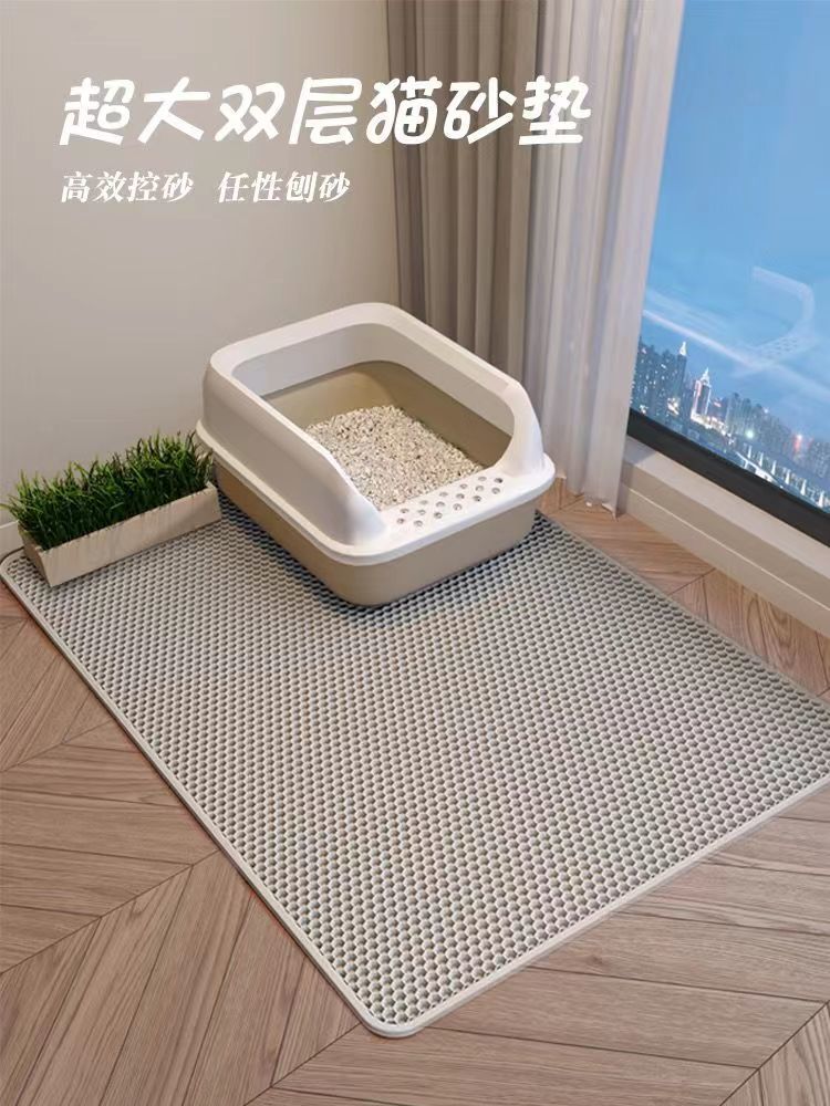 초대형 이중층 고양이 모래 매트, 세탁 가능한 바닥 매트, 휴대 방지, 중공 필터, 물 튀김 방지 및 모래 제어 고양이 모래 고양이 화장실 용품스토어 가기