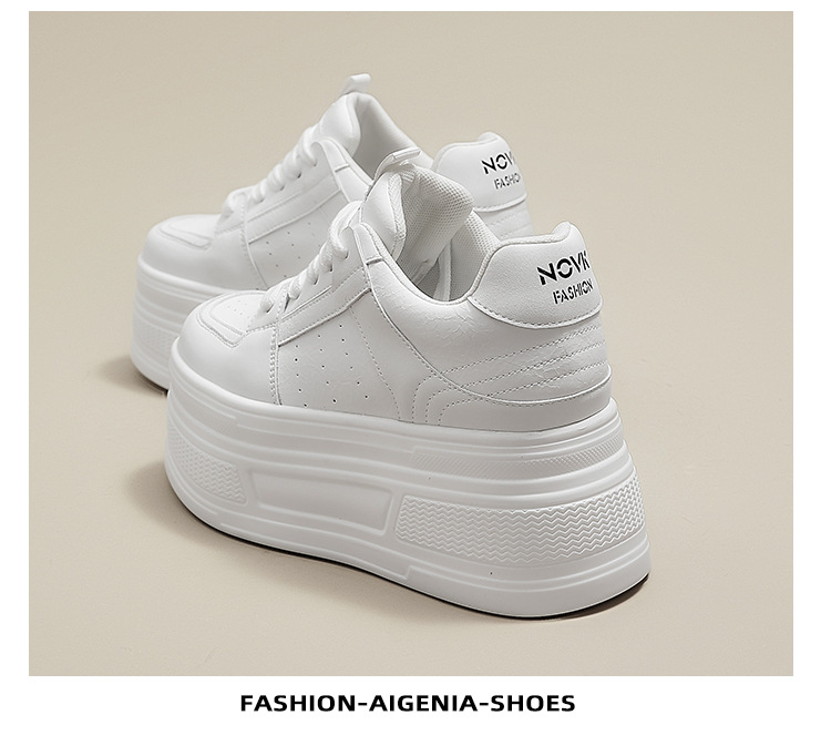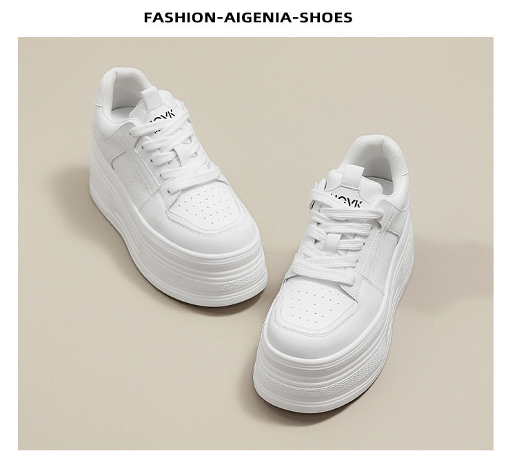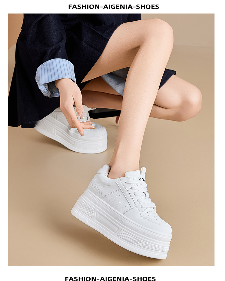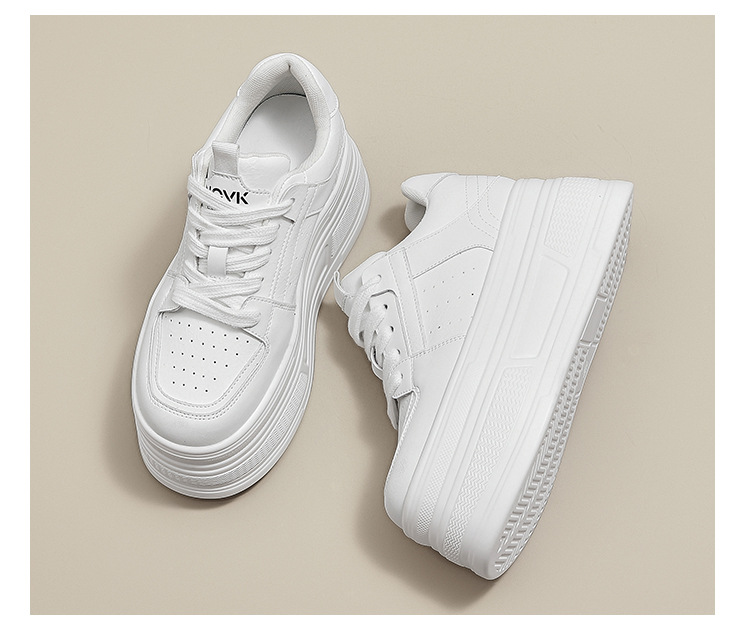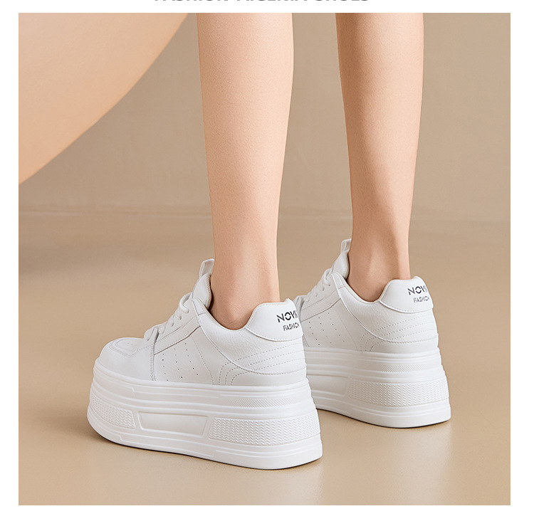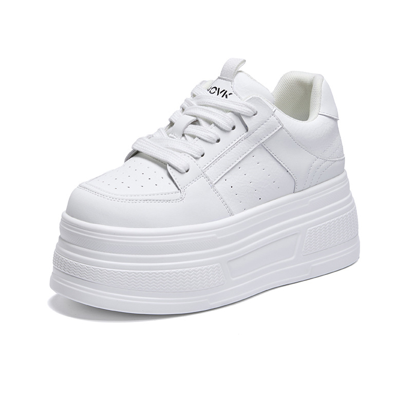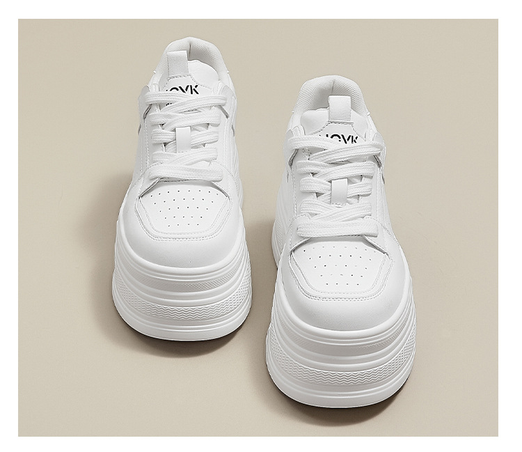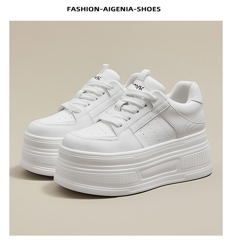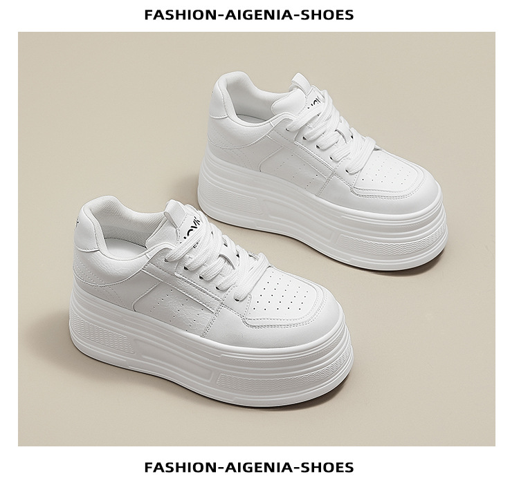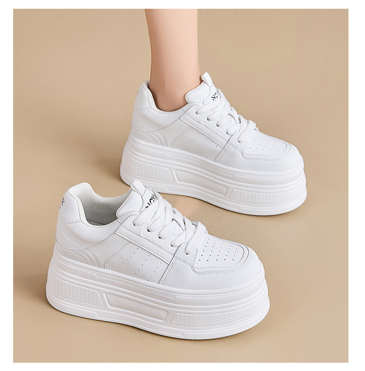 두꺼운 바닥 가죽 흰색 신발 여성의 2025 새 봄 올 매치 싱글 레이어 신발 머핀 운동화 높이 캐주얼 보드 신발스토어 가기