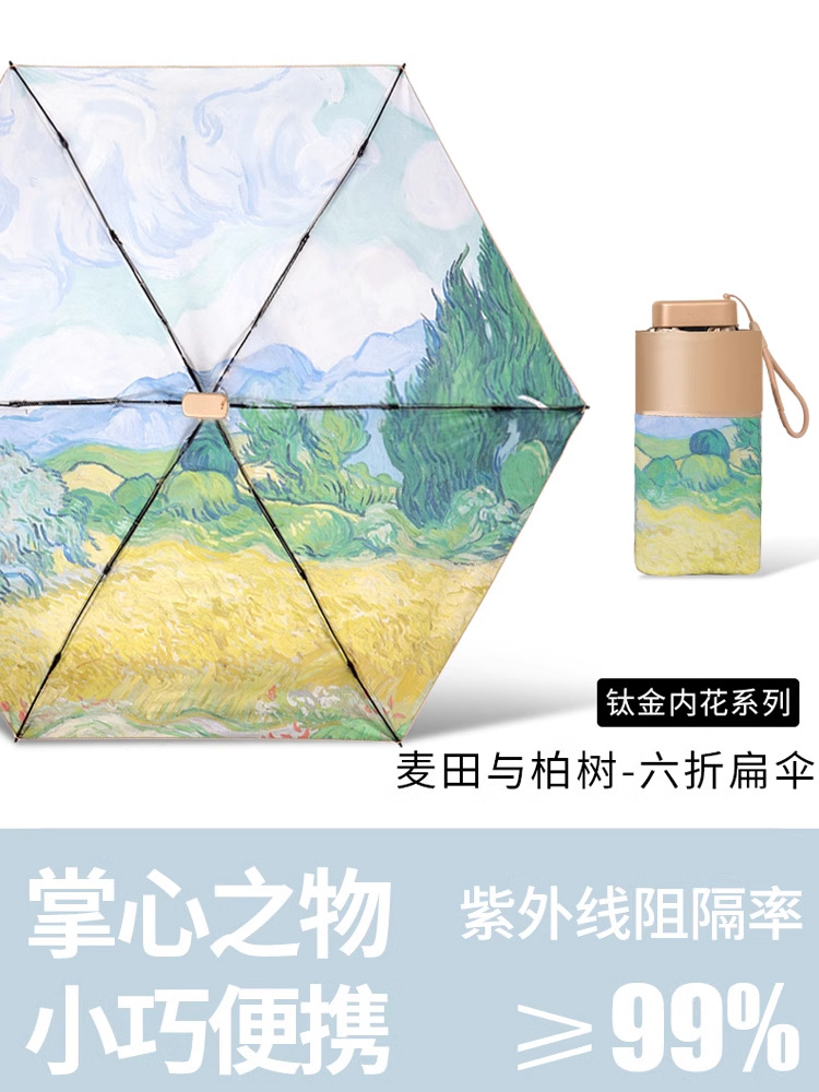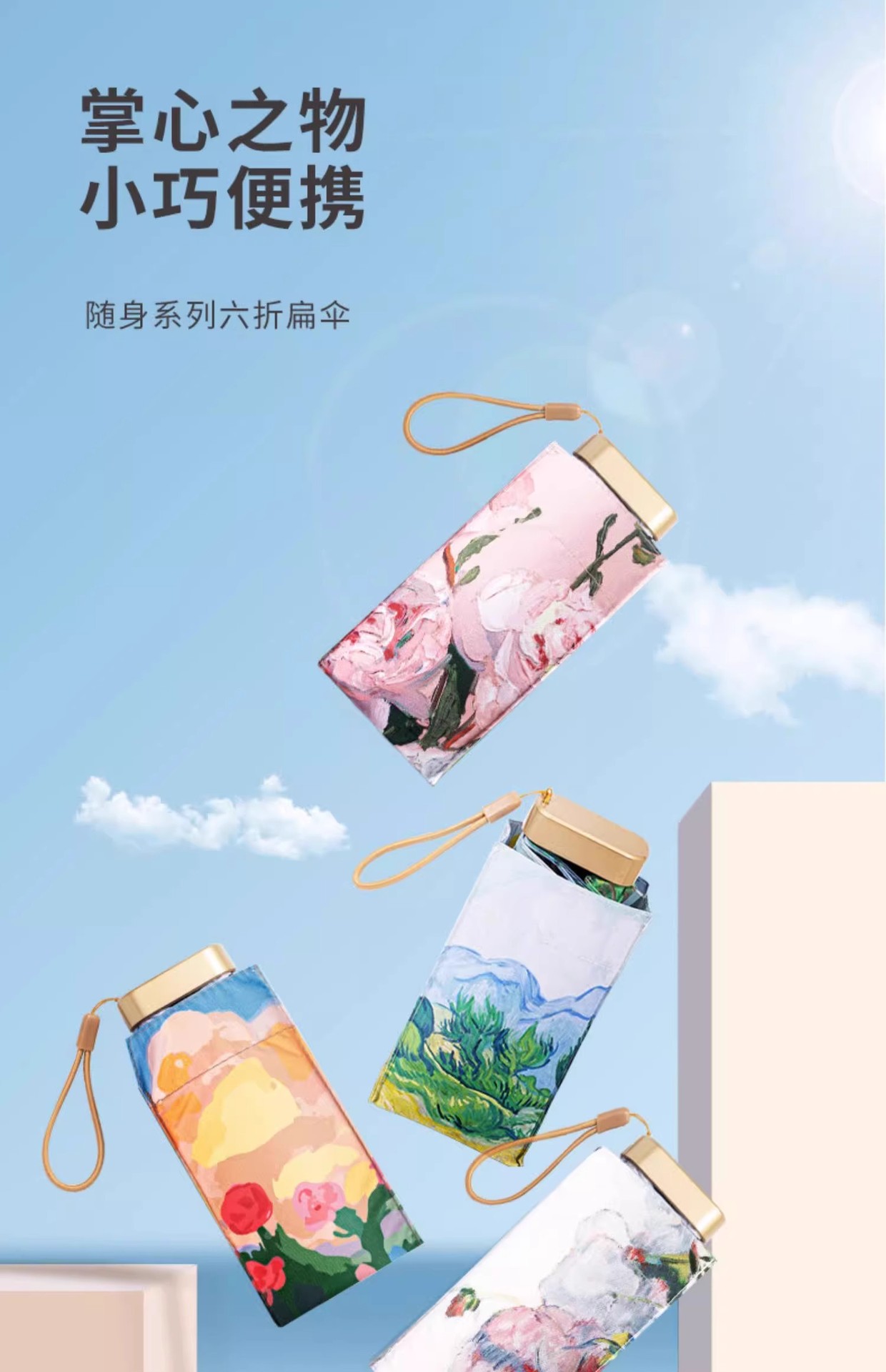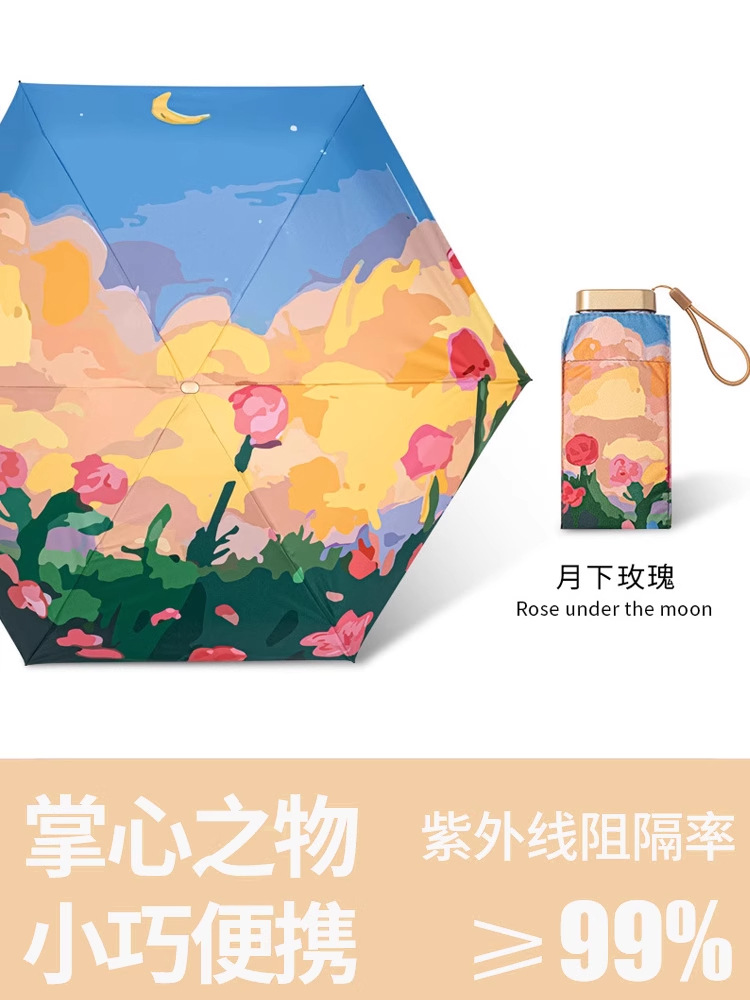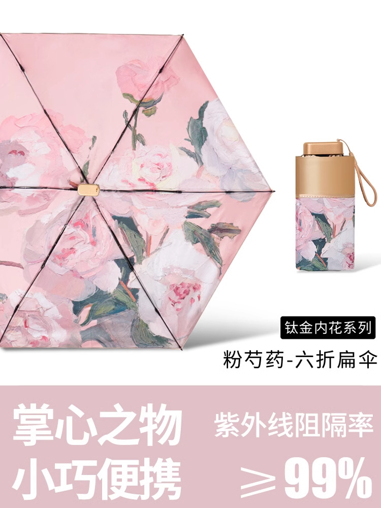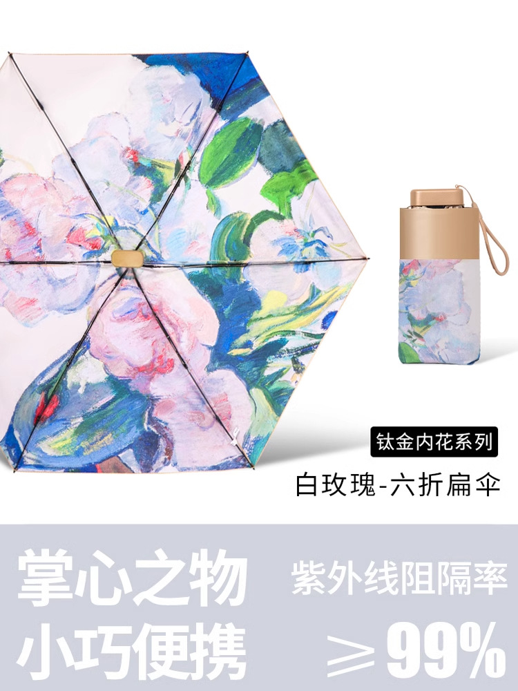 새로운 선 스크린 UV 햇빛 미니 접기 6 배 우산 컴팩트 휴대용 유화 써니 우산 태양 우산