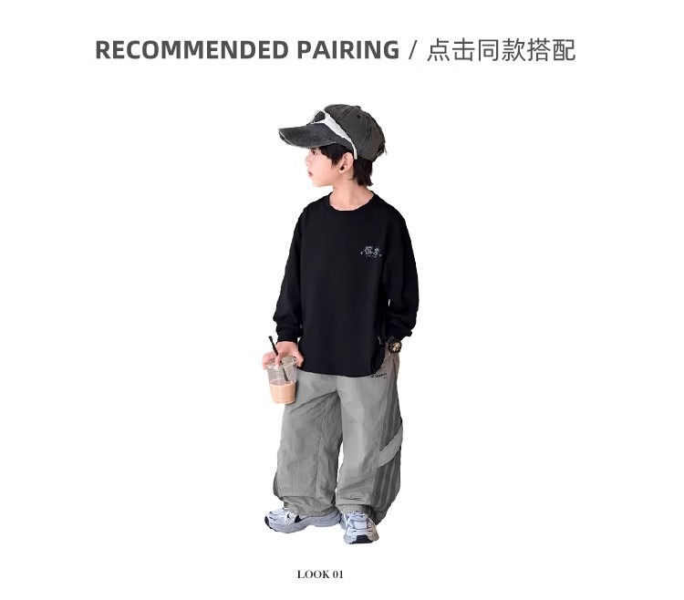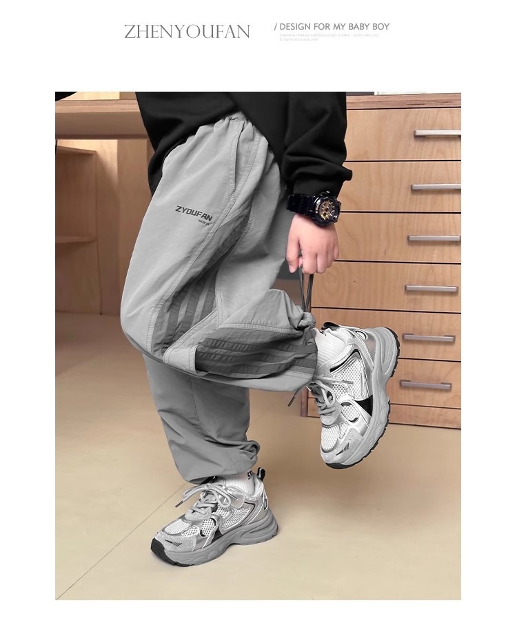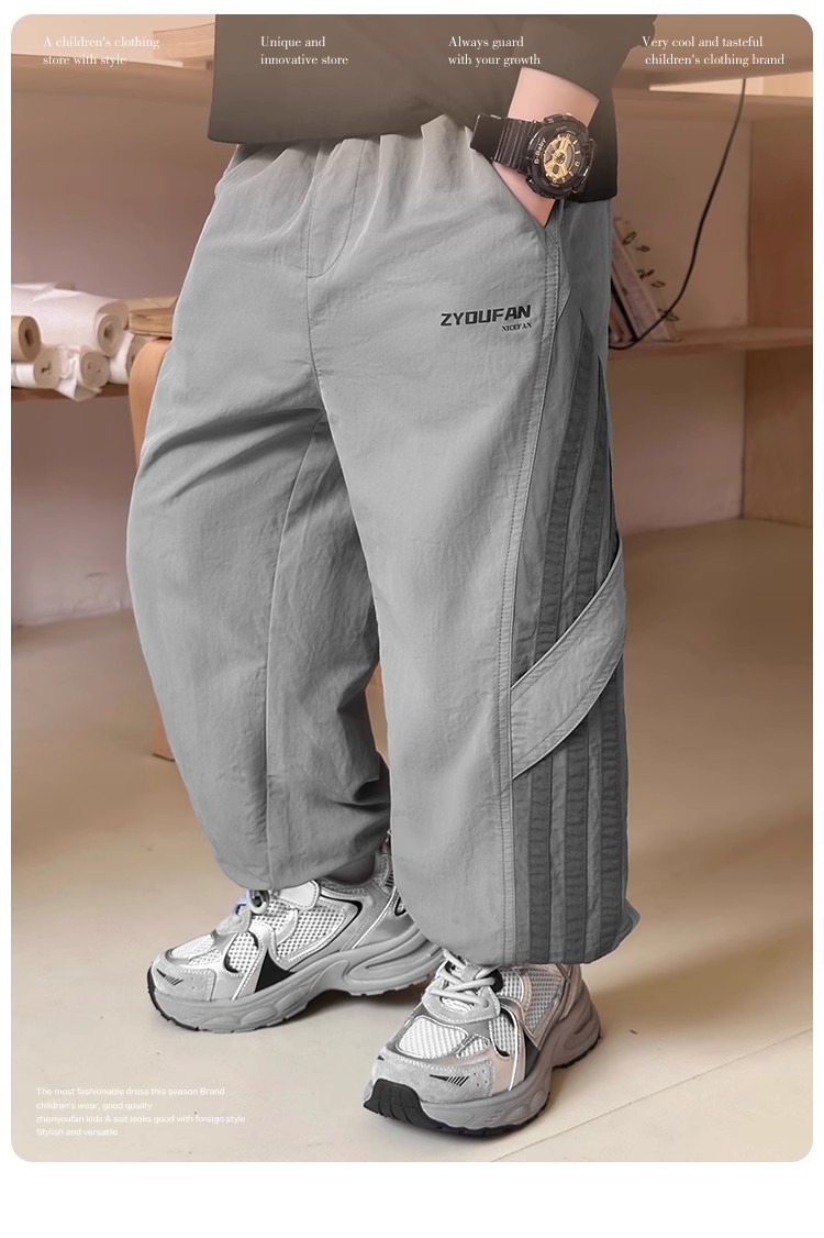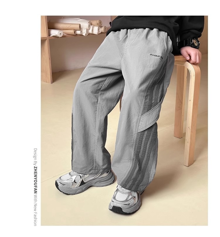 아동복 소년 바지 봄과 가을 2025 새로운 ordwork 바지 어린이 낙하산 바지 빅 보이 스트레이트 캐주얼 바지스토어 가기