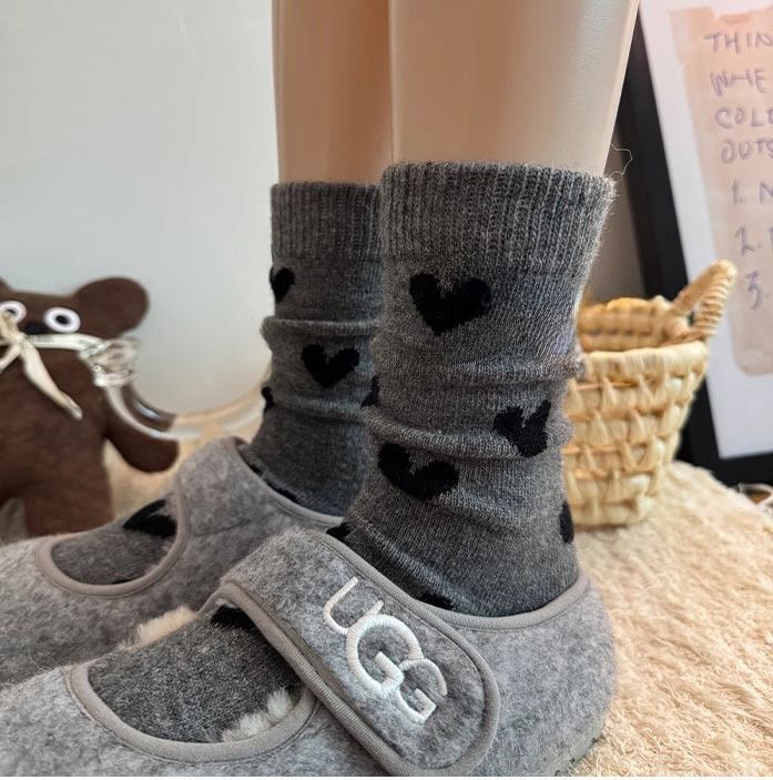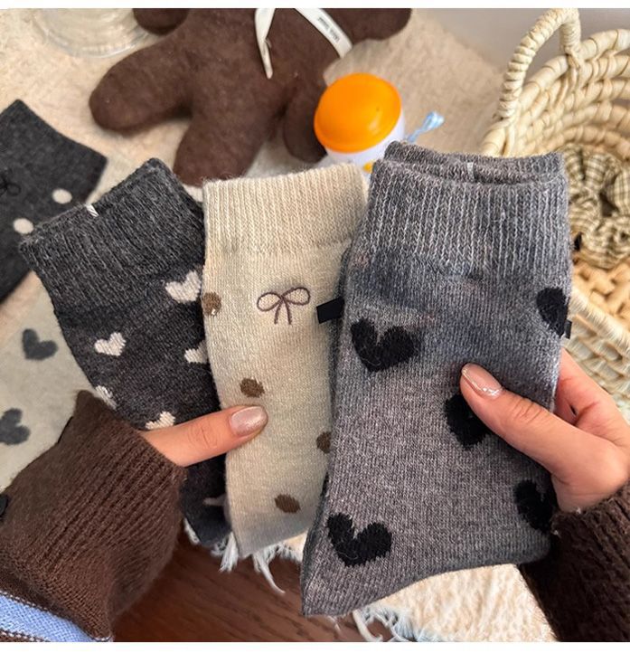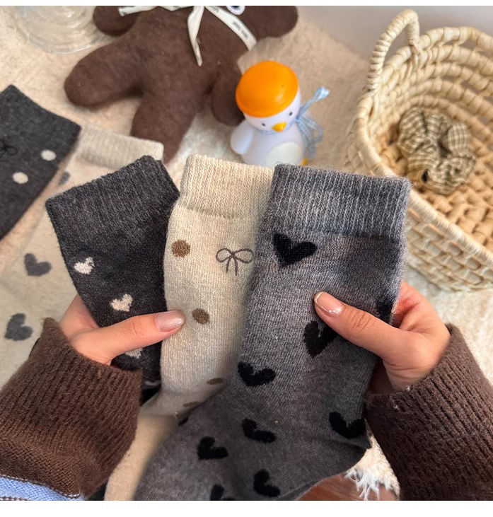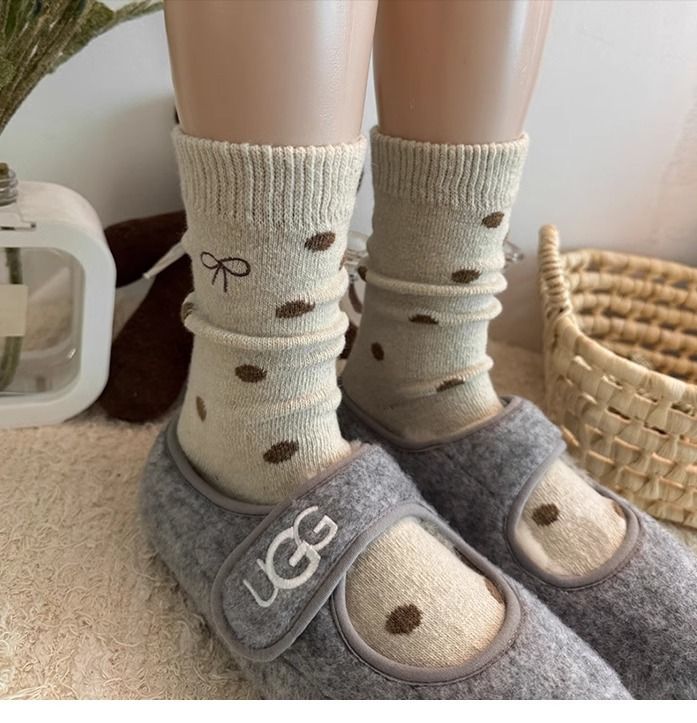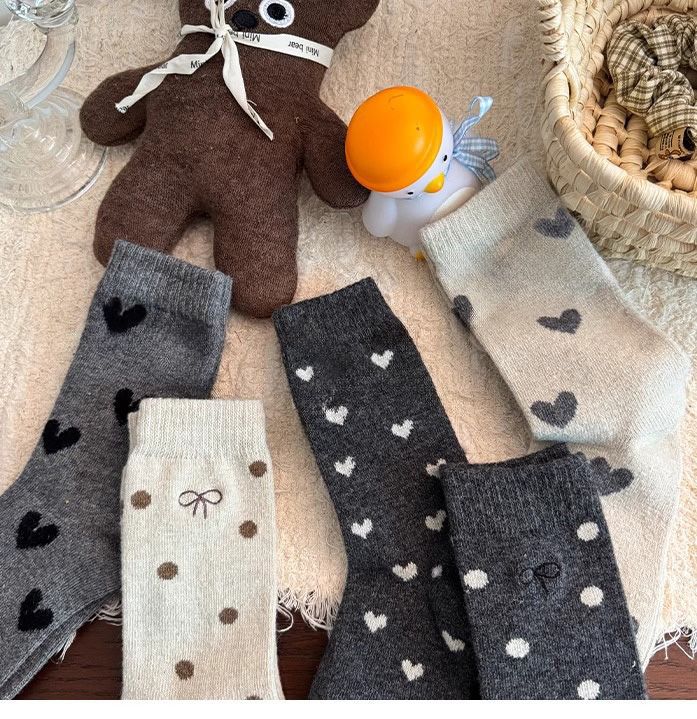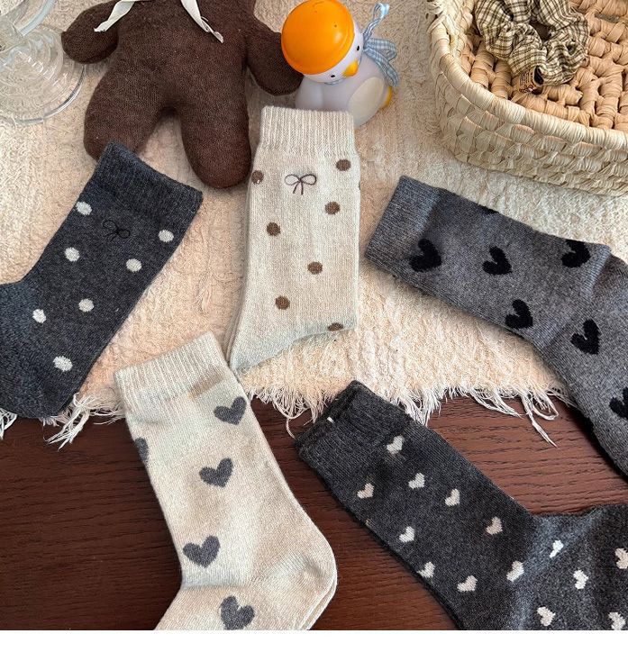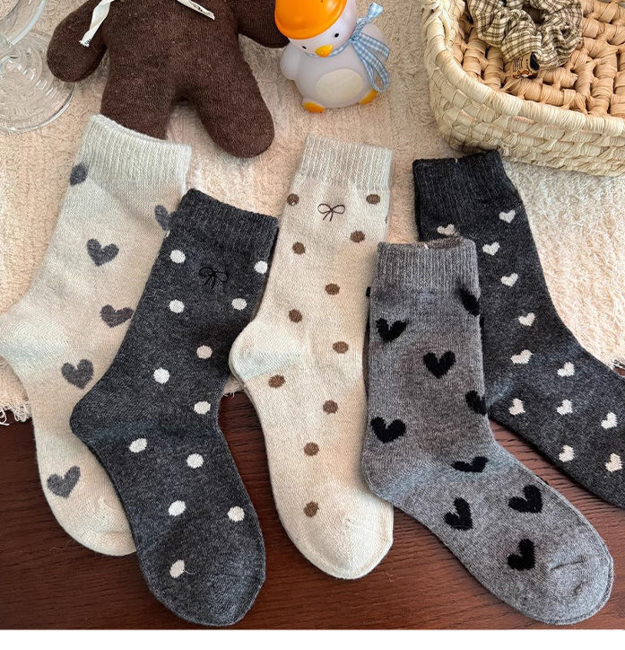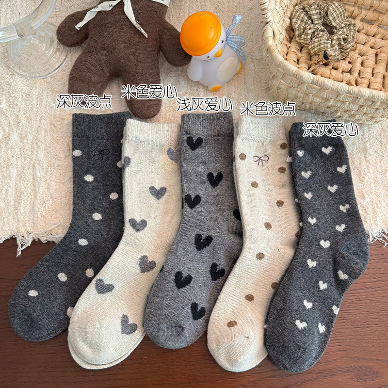 여아 양말, 가을 겨울 사랑 양말, 어린 소녀 아기 폴카 도트 종아리 양말, 한국 대학 스타일, 큰 어린이스토어 가기