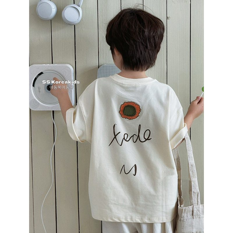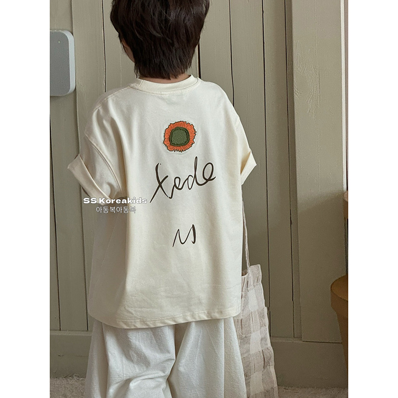 남아 2026년 여름 신상 스타일리쉬하고 편안한 아동용 레터 패턴 반팔 루즈핏 티셔츠 상의 트렌디스토어 가기