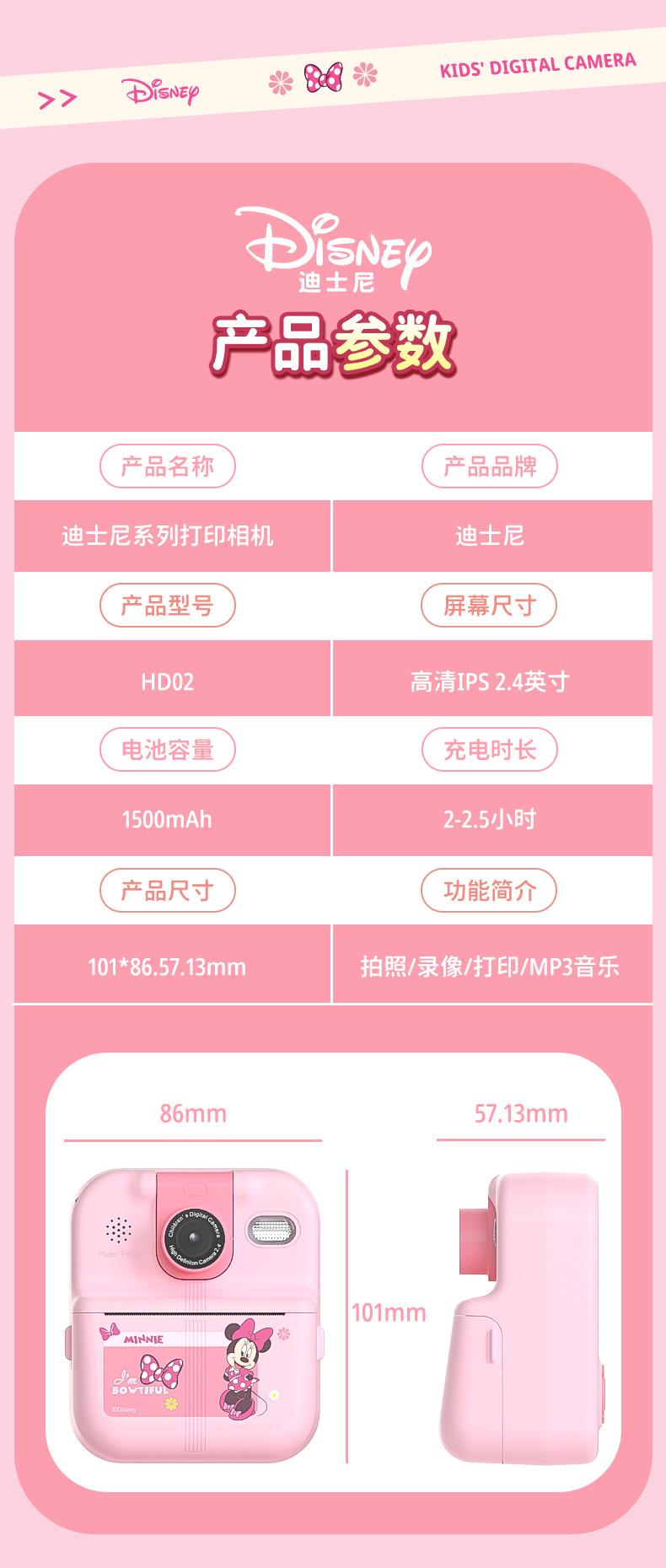 디즈니 만화 어린이용 폴라로이드 카메라 열전사 인쇄 카메라 디지털 사진 카메라 블루투스 핫 스타일