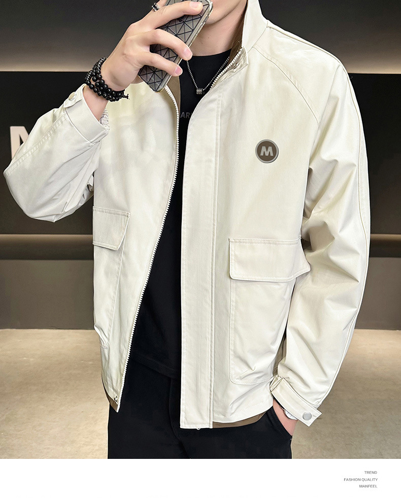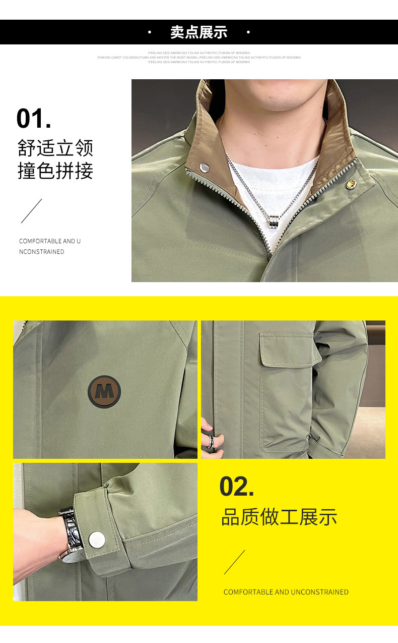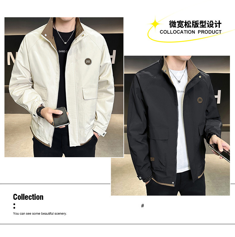 수직 칼라 재킷 남자 2025 봄과 가을 새로운 색상 일치 미국 스타일 작업복 플러스 사이즈 캐주얼 올 매치 재킷 트렌디 재킷스토어 가기