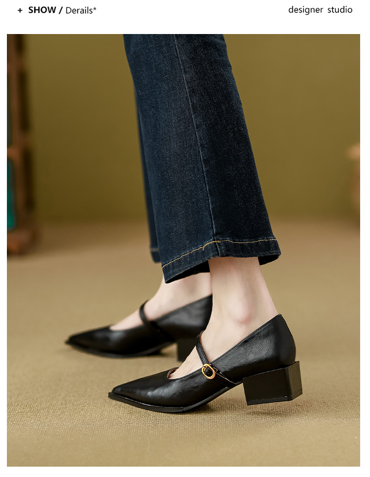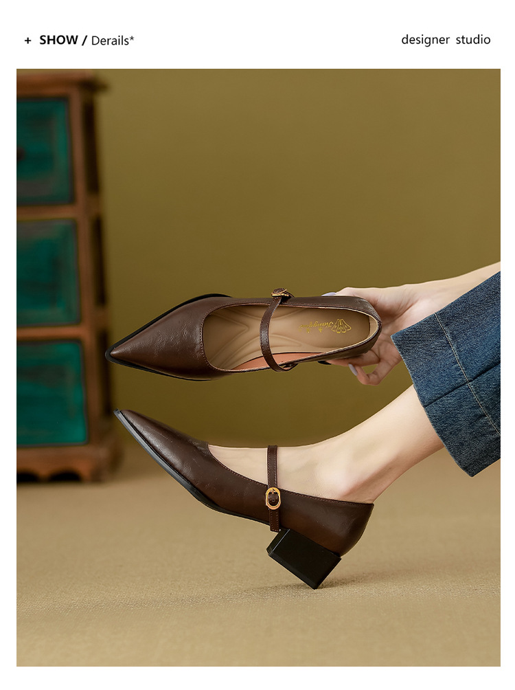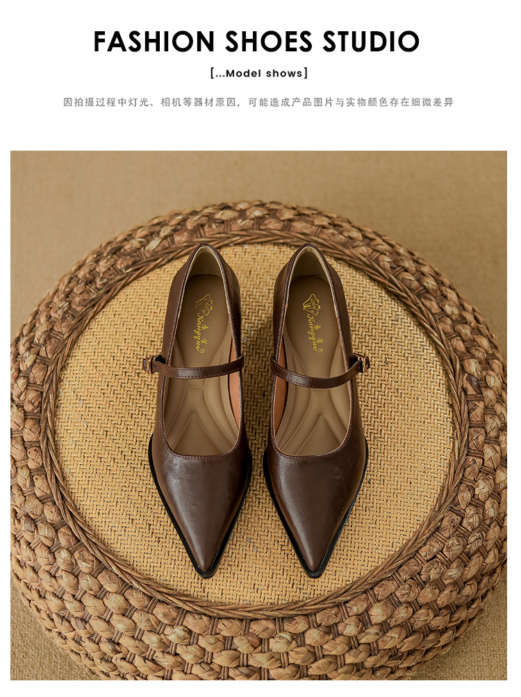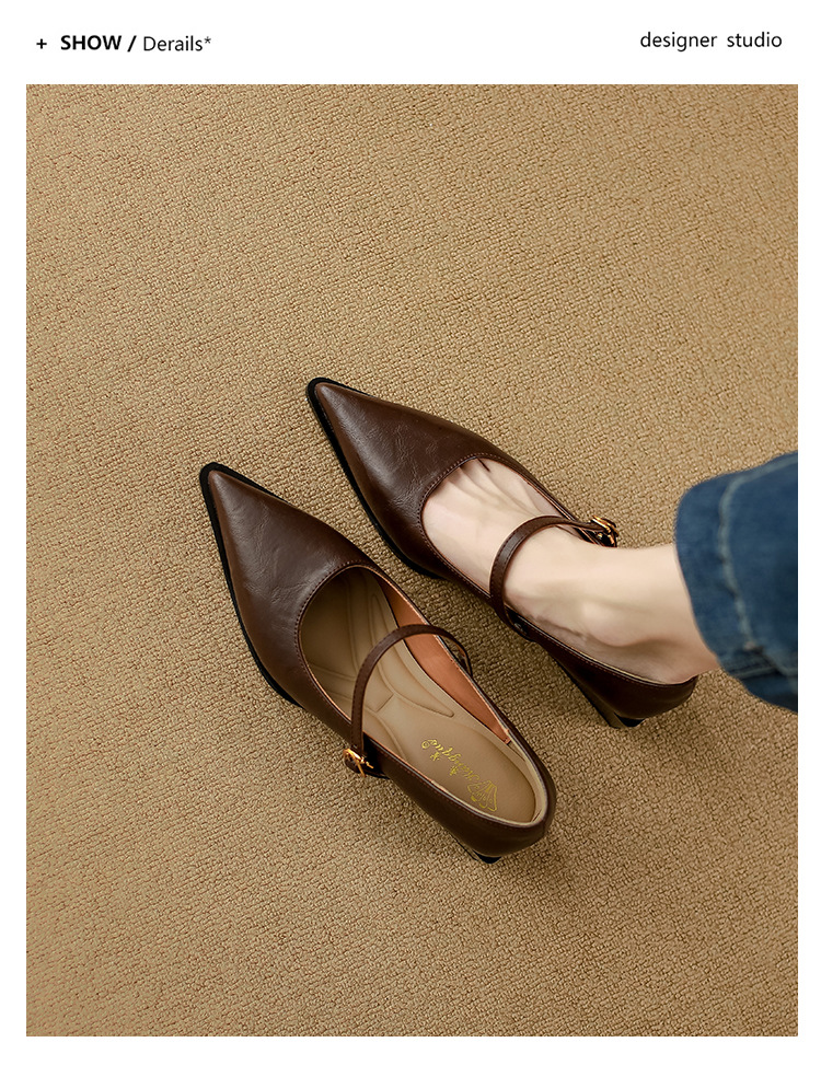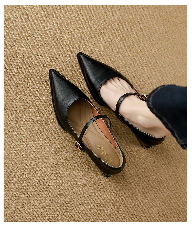 고메이니 프렌치 스타일 우아한 메리 제인 신발 여성 2025 새로운 도착 한국식 통근 포인팅 신발스토어 가기