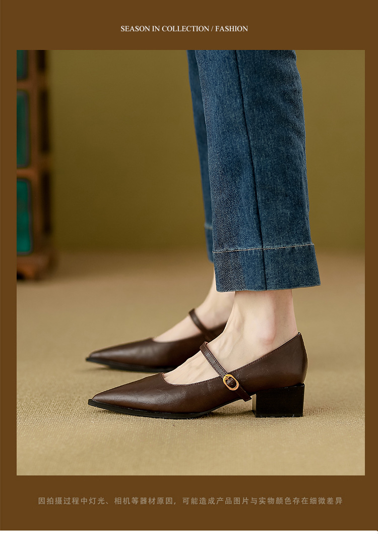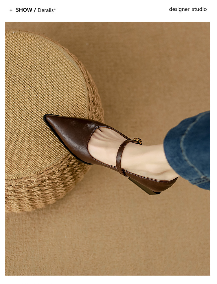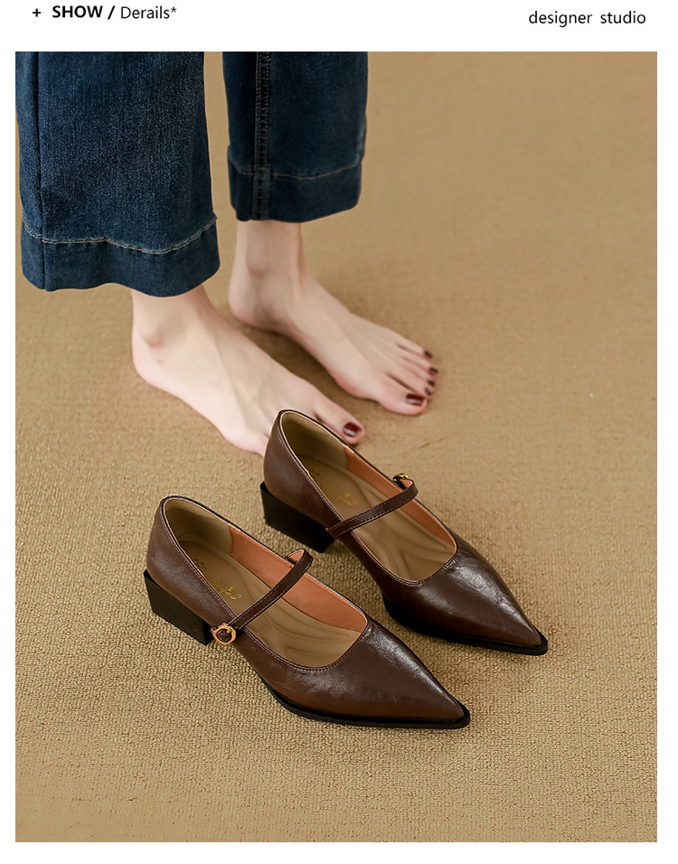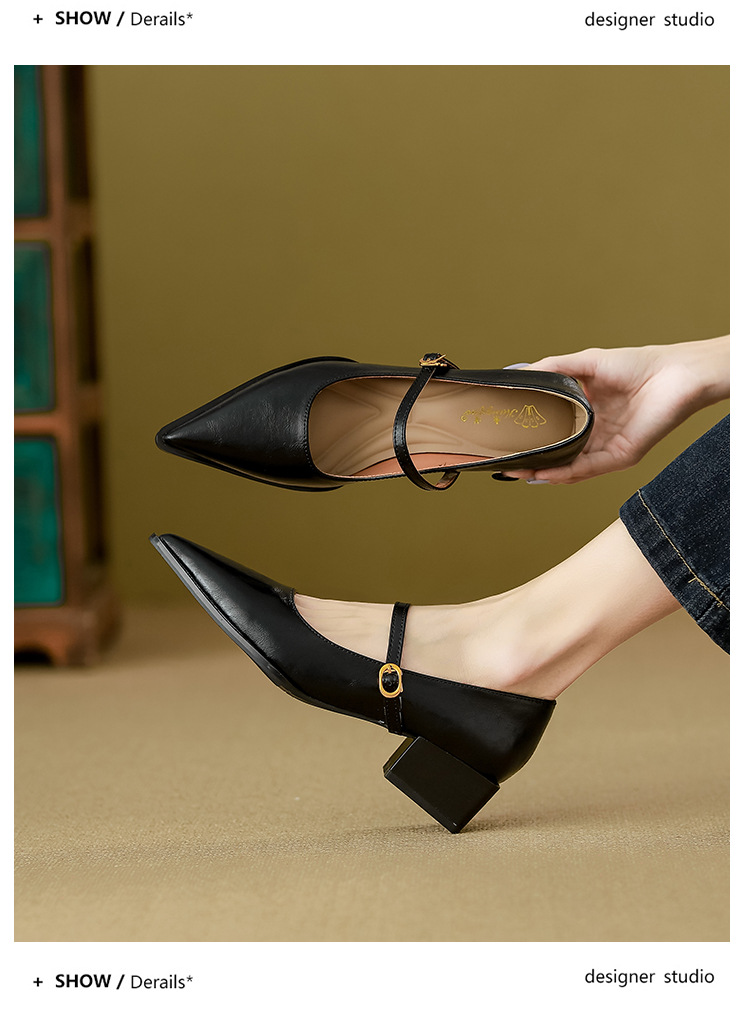 고메이니 프렌치 스타일 우아한 메리 제인 신발 여성 2025 새로운 도착 한국식 통근 포인팅 신발스토어 가기