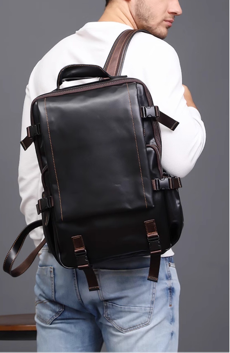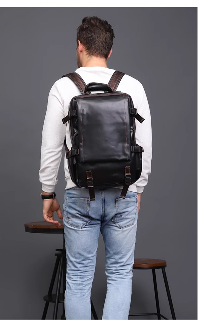 대용량 여행 가죽 배낭 사업 캐주얼 탑 레이어 Cowhide 아카데미 스타일 배낭 남성 컴퓨터 가방 야외