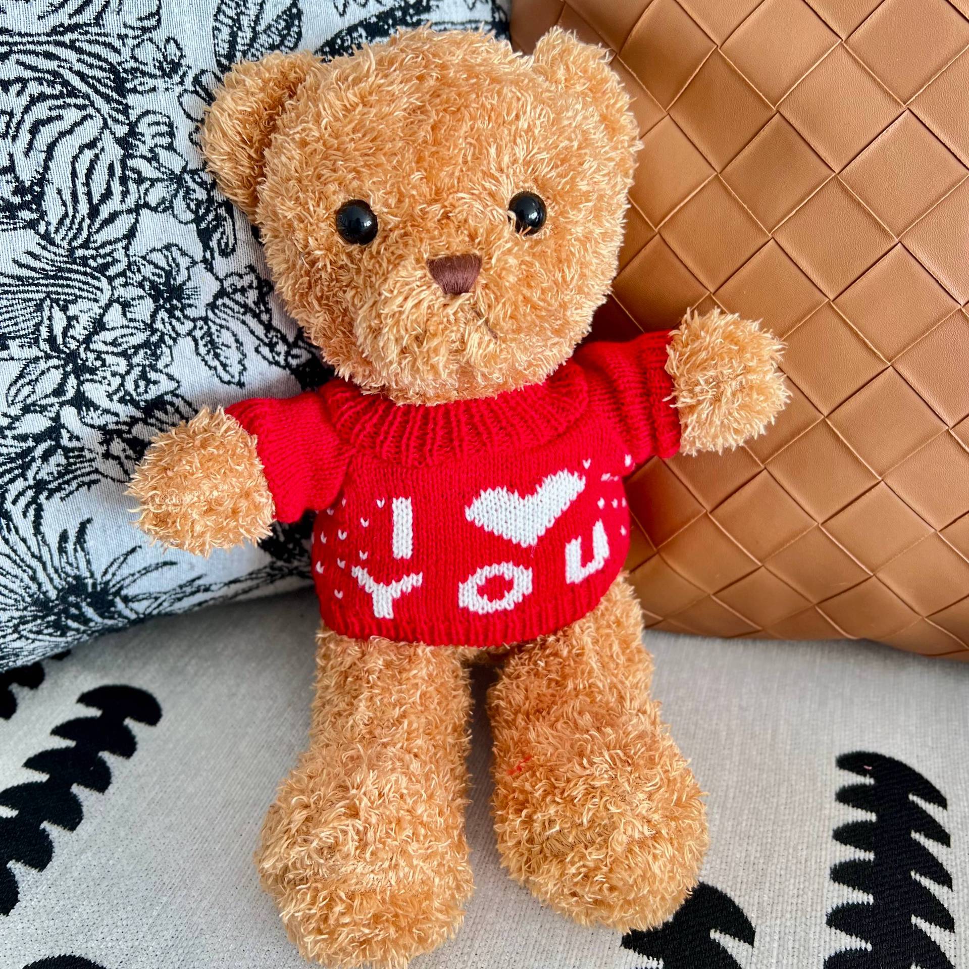 • 빨간 줄무늬 스웨터 곰인형 + 선물 상자 + 조명 스트립