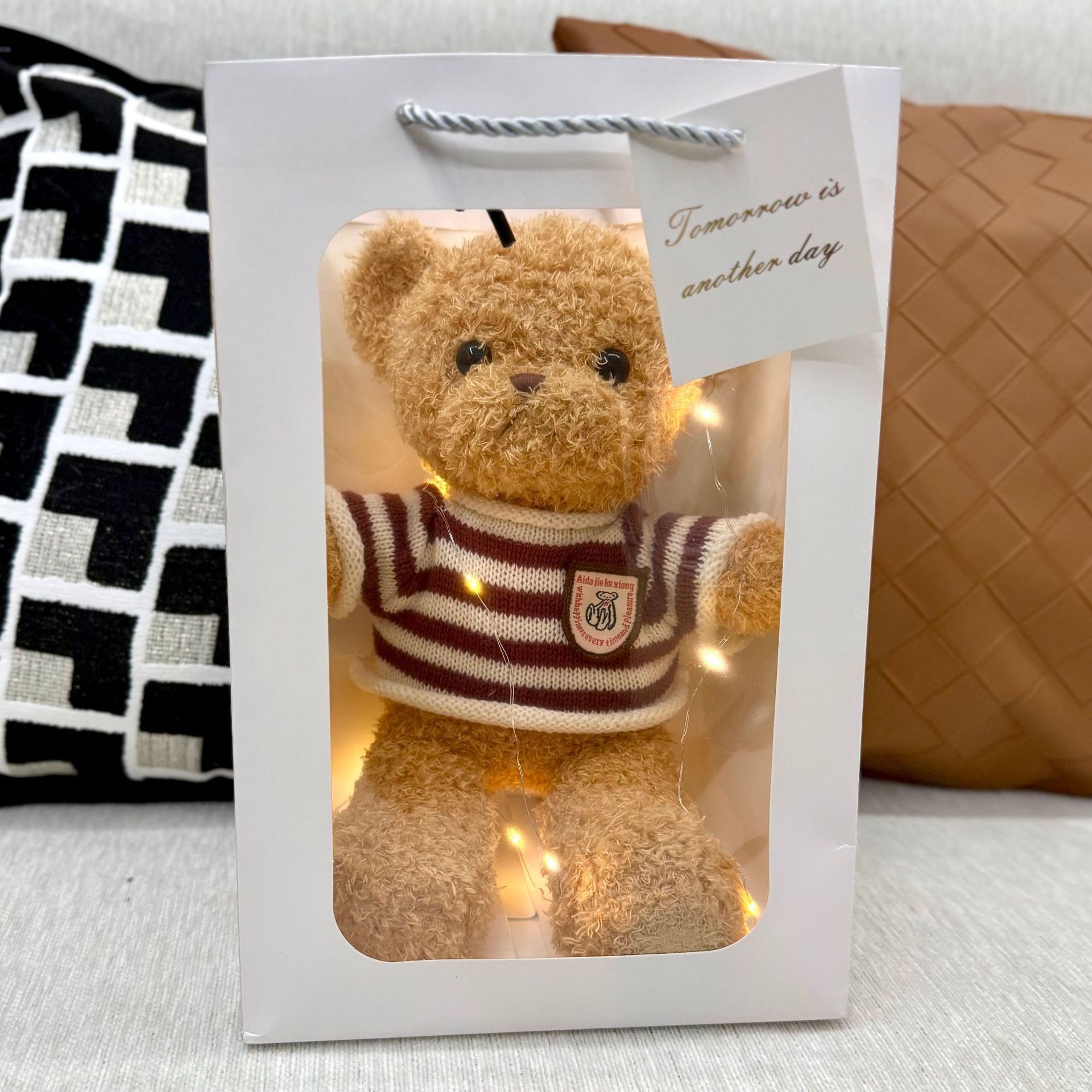• 갈색 후드티 곰돌이 인형 + 선물 상자 + 조명 스트립