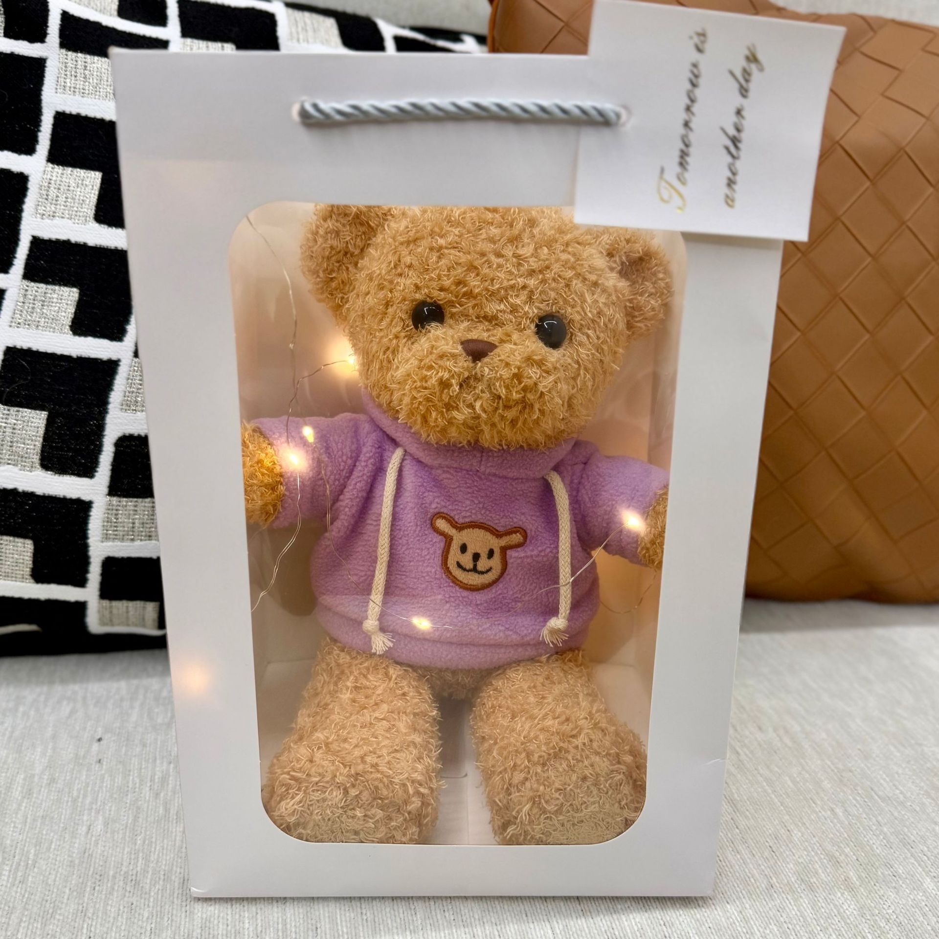 • 회보라색 후드티 곰돌이 인형 + 선물 상자 + 조명 스트립