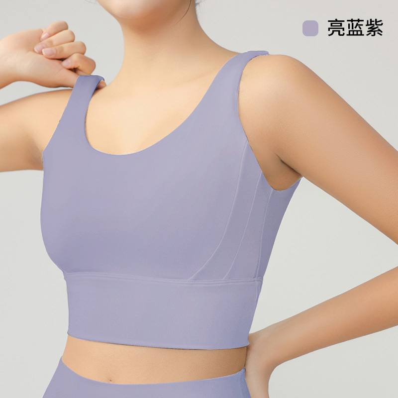 스포츠 브라 고정형 패드 고탄력 누드감 요가 브라 U자형 백리스 피트니스 탱크탑 여성 여름 고탄력 도매