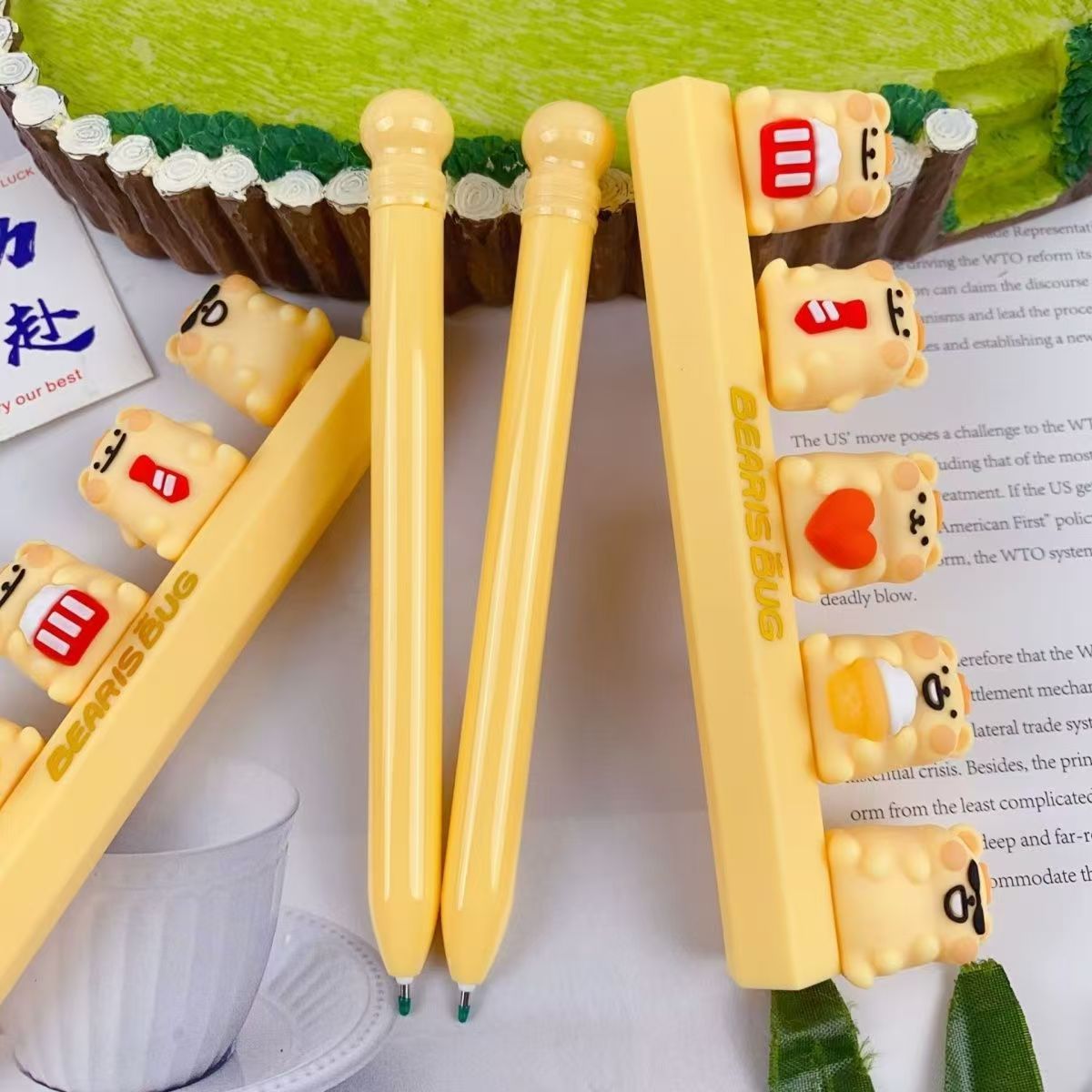 Keqi 쓰기 노란 곰 공동 DIY 귀여운 펜 만화 귀여운 젤 펜 창조적 인 검은 펜 학생 스타일 펜