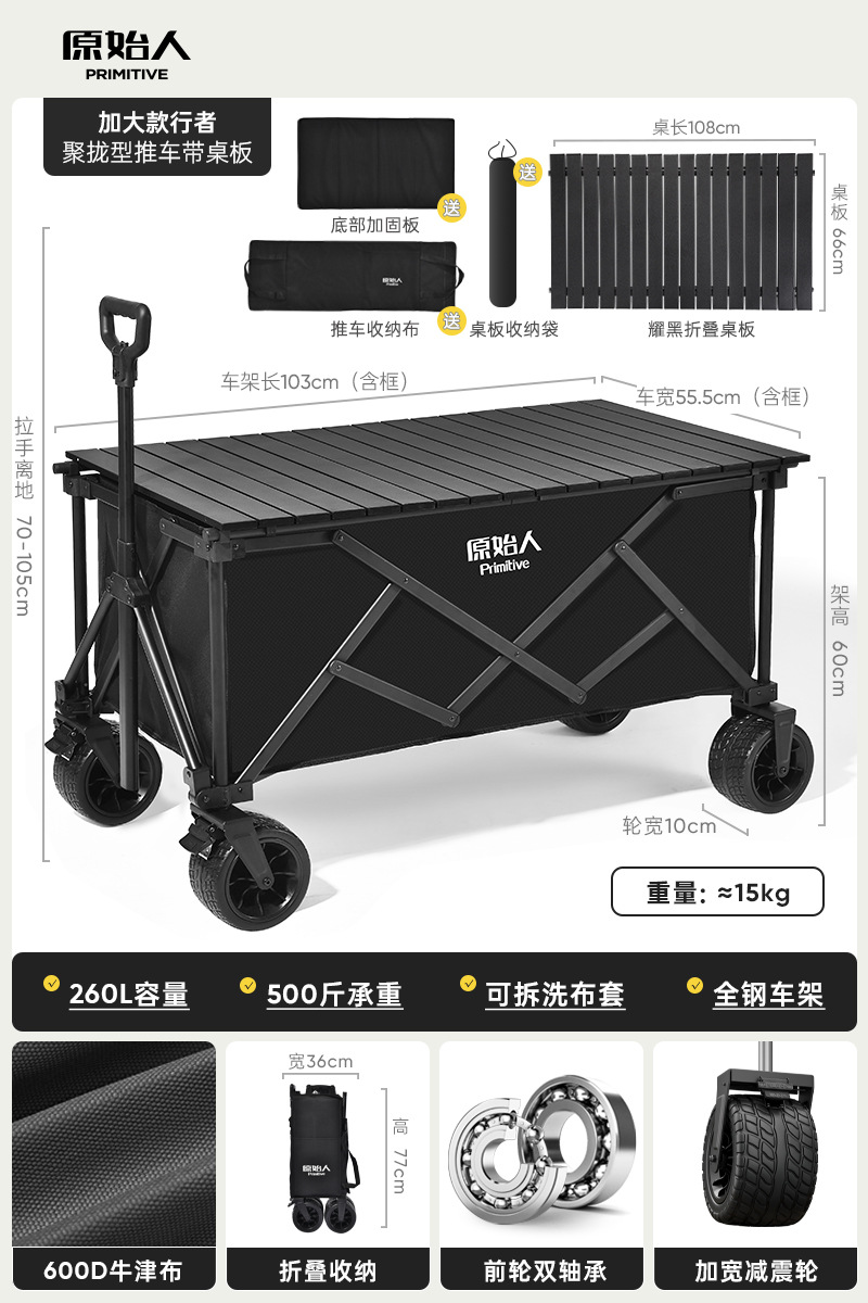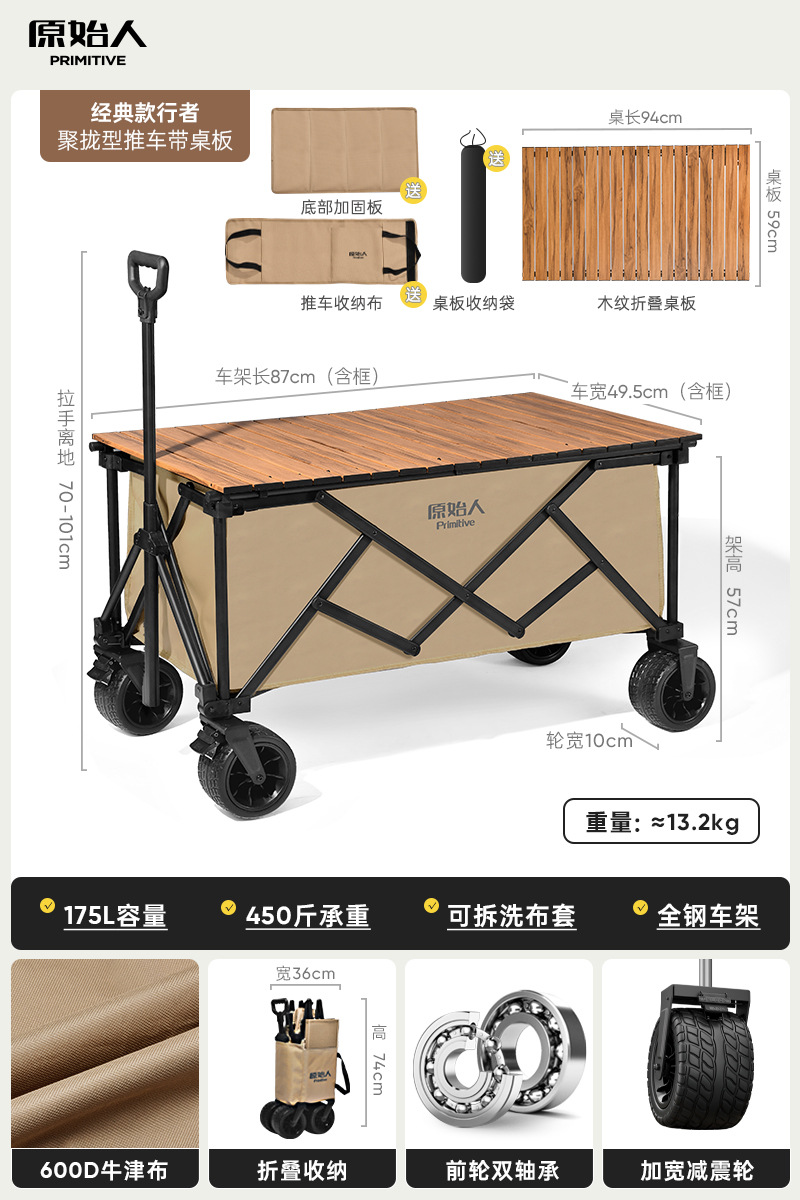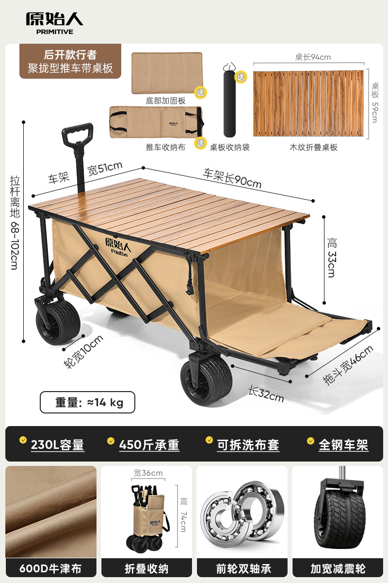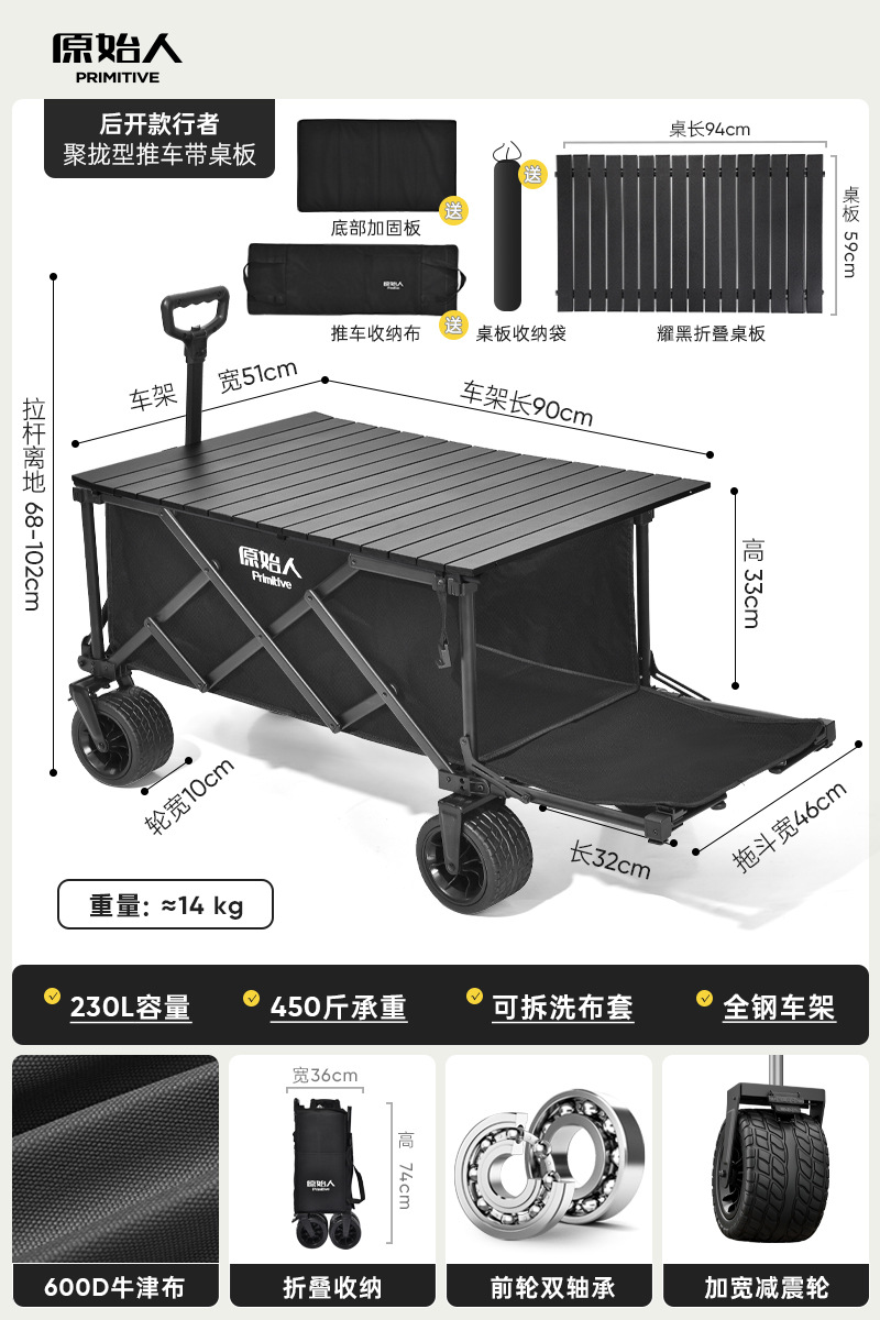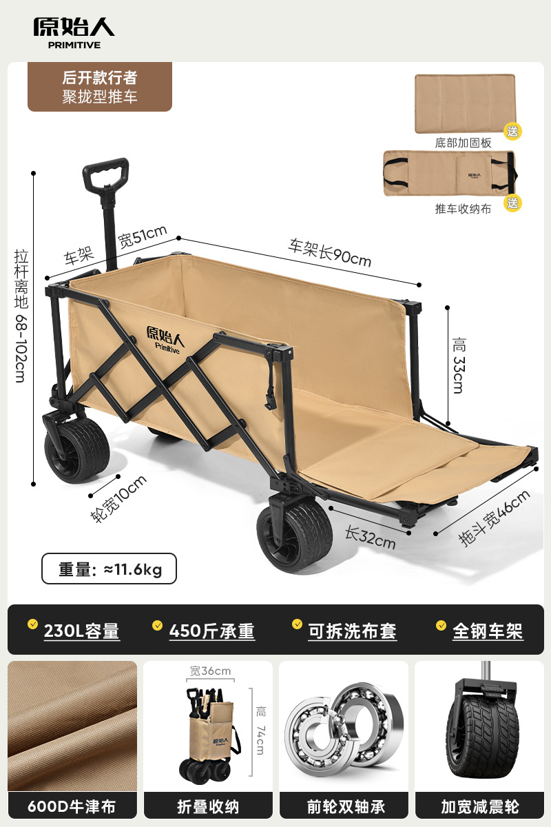 원시 캠핑 카트 야외 캠프 트레일러 여행 접이식 핸드 푸시 피크닉 캠핑 트롤리 Xiao Zhanchi스토어 가기