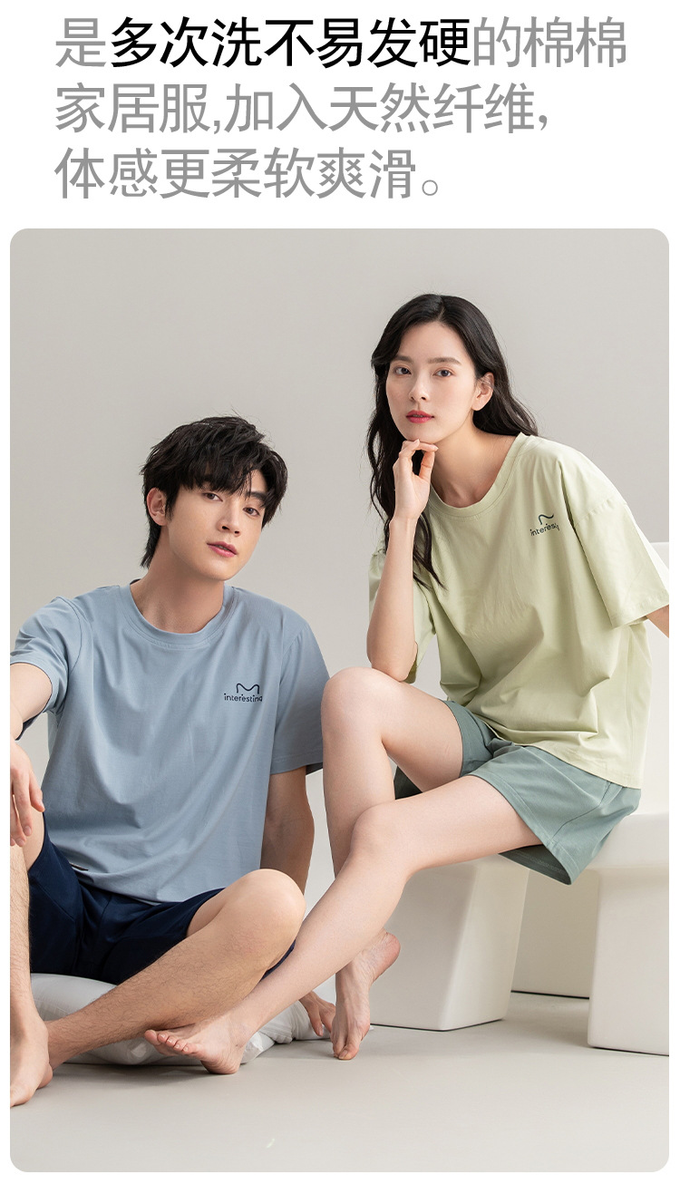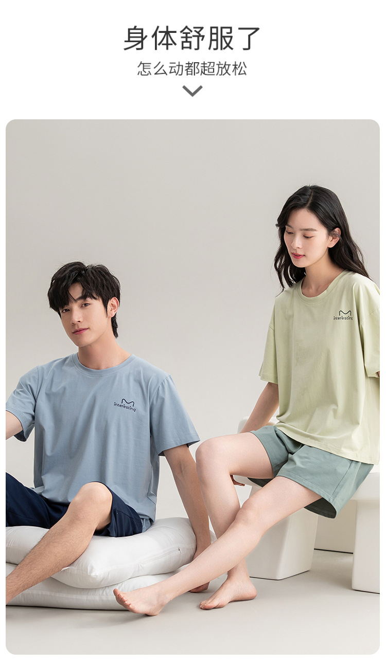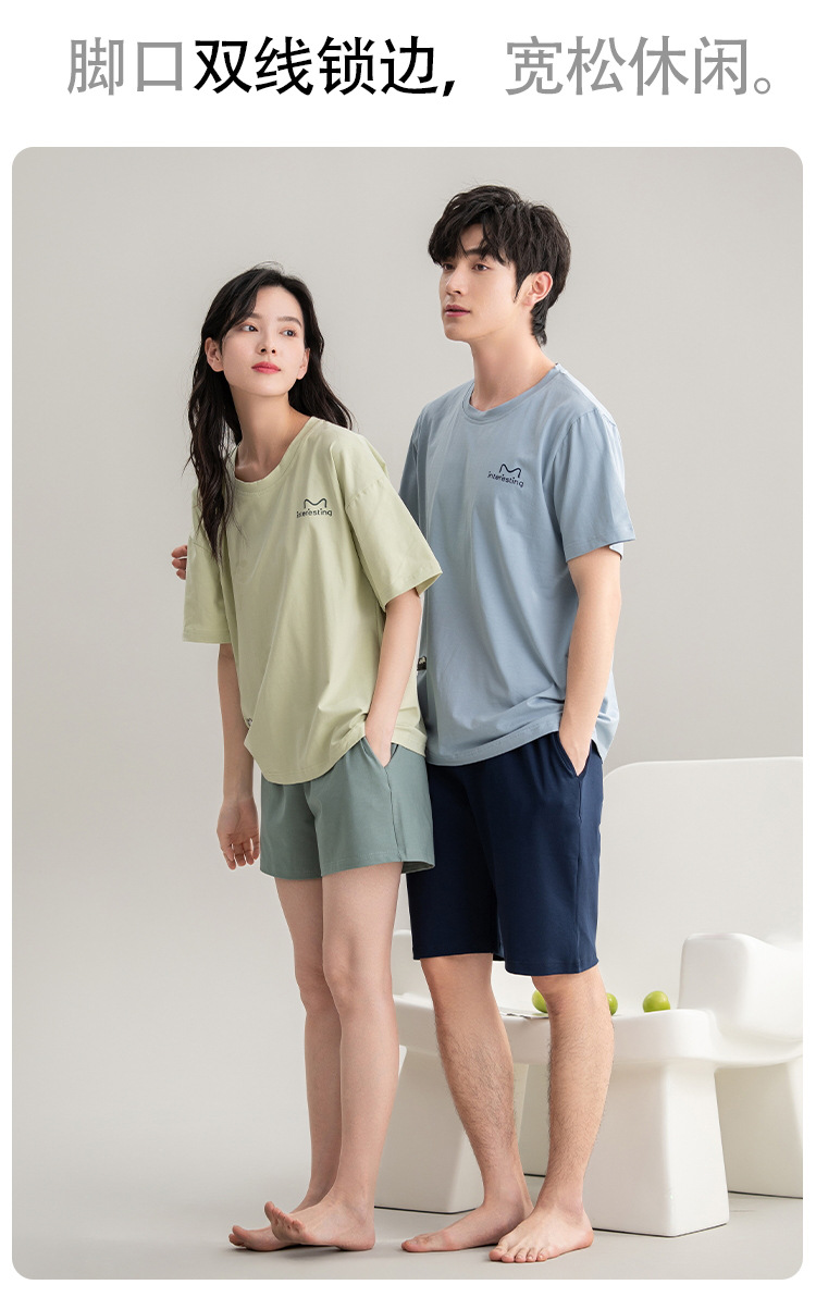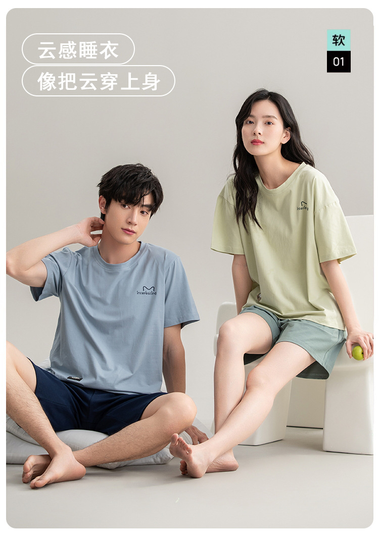 클래스 A 항균 커플 잠옷 여름 반팔 순면 한국 캐주얼 단색 고급 남녀 홈 의류 세트스토어 가기