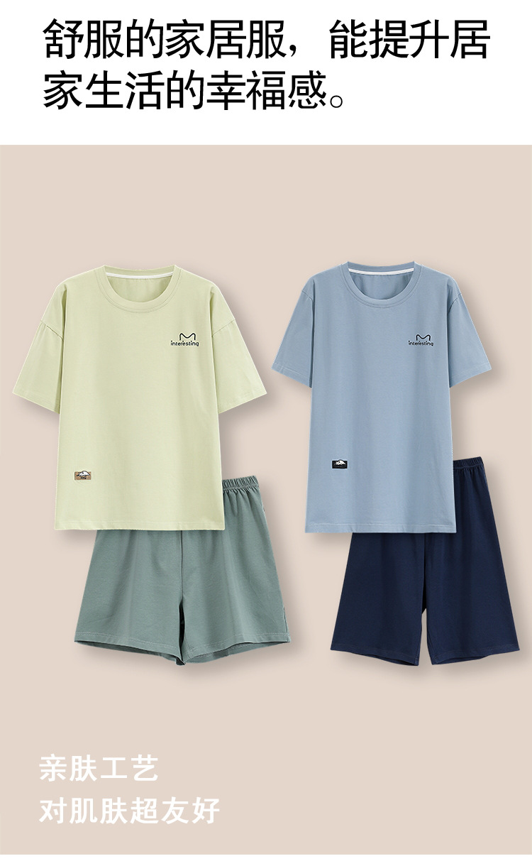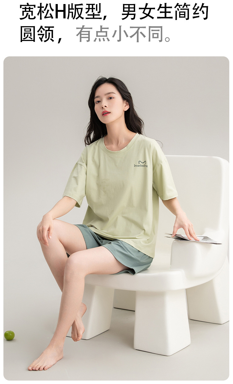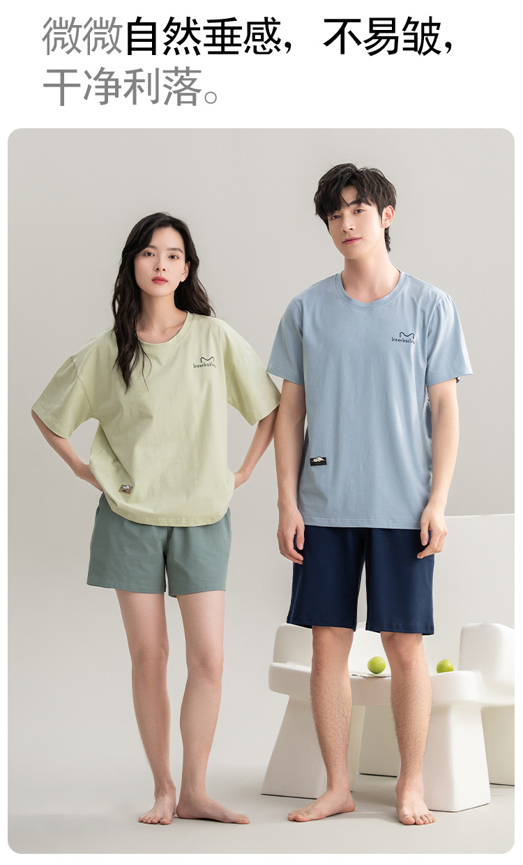 클래스 A 항균 커플 잠옷 여름 반팔 순면 한국 캐주얼 단색 고급 남녀 홈 의류 세트스토어 가기