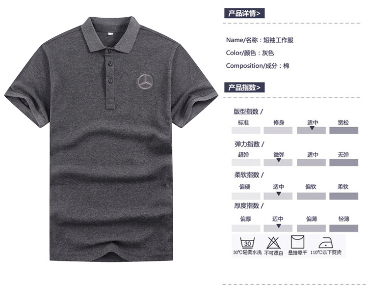 여름 메르세데스-벤츠 작업복 반팔 티셔츠 차 4s 상점 도구 자동 수리 작업복 세트 남성 수리 폴로 셔츠스토어 가기