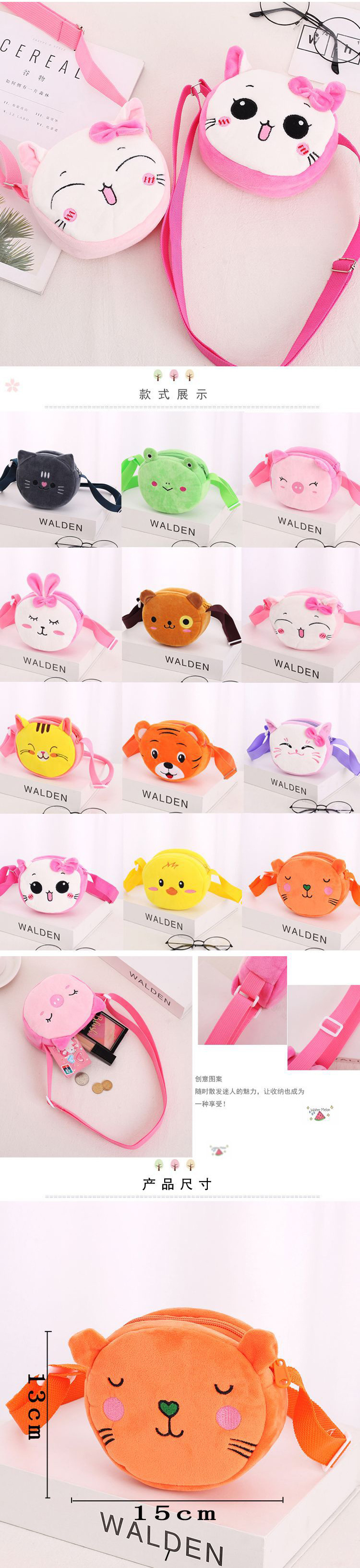 Jingle Cat 동물 모양 귀여운 작은 배낭 만화 인형 플러시 동전 지갑 어깨 크로스 바디 어린이 가방 휴대용스토어 가기