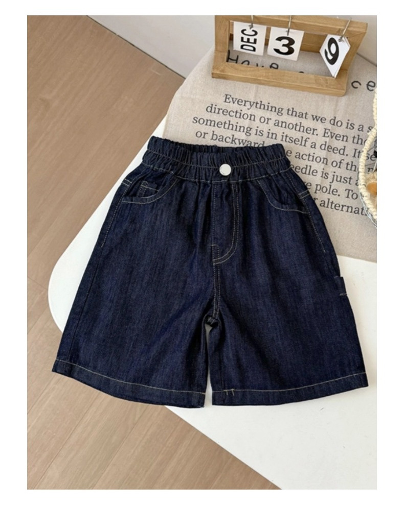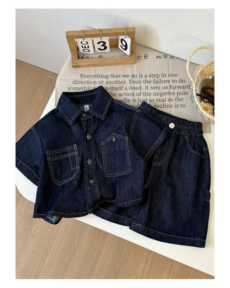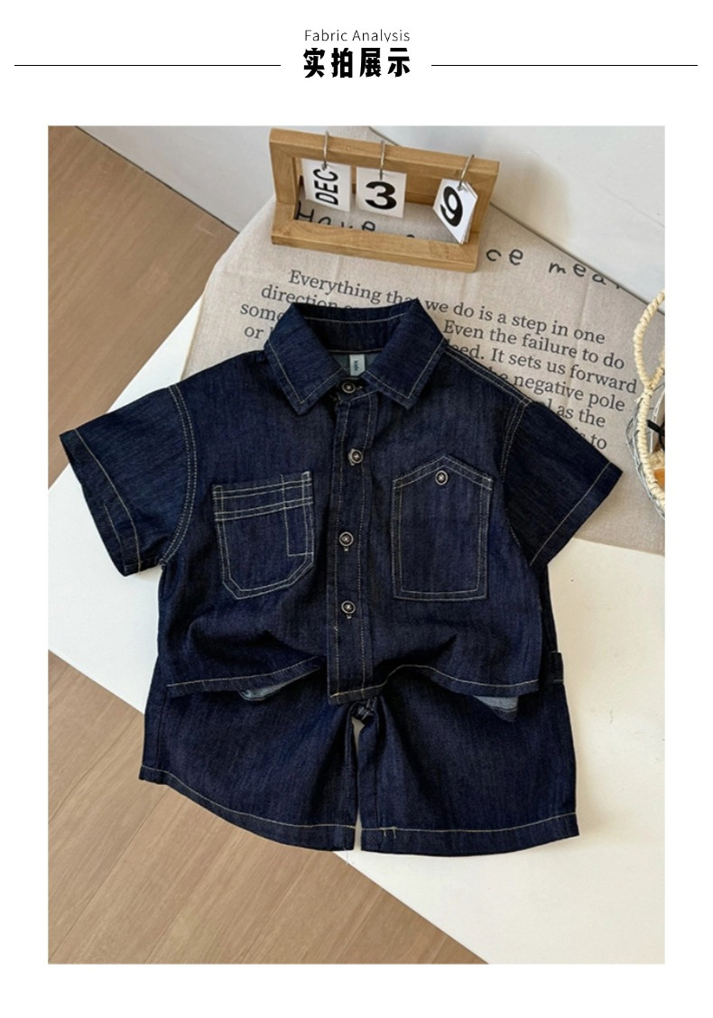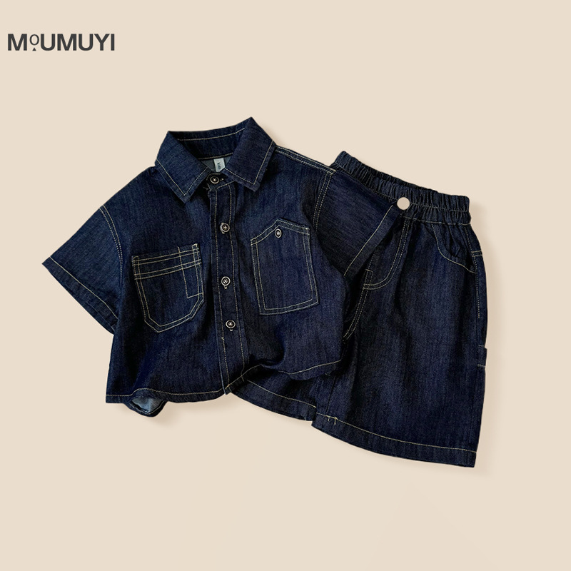 소년 데님 세트 반팔 셔츠 2025 새로운 아기 잘 생긴 여름 유행 셔츠 세련된 투피스 세트스토어 가기