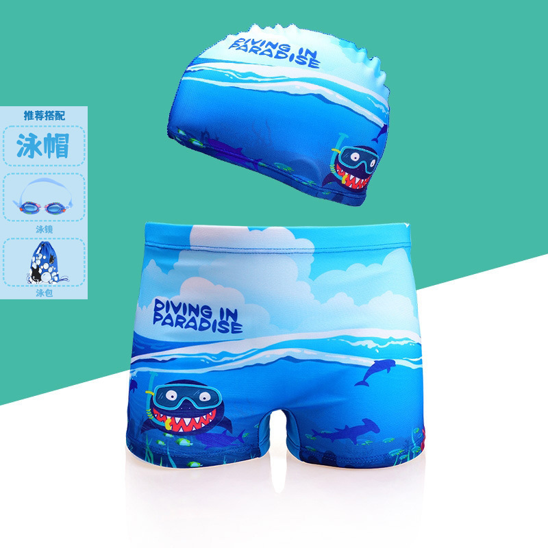 아동 수영 바지, 남아 수영복, 만화 사각형 속건 아동용 수영 모자 세트, 중소형 남아 온천스토어 가기