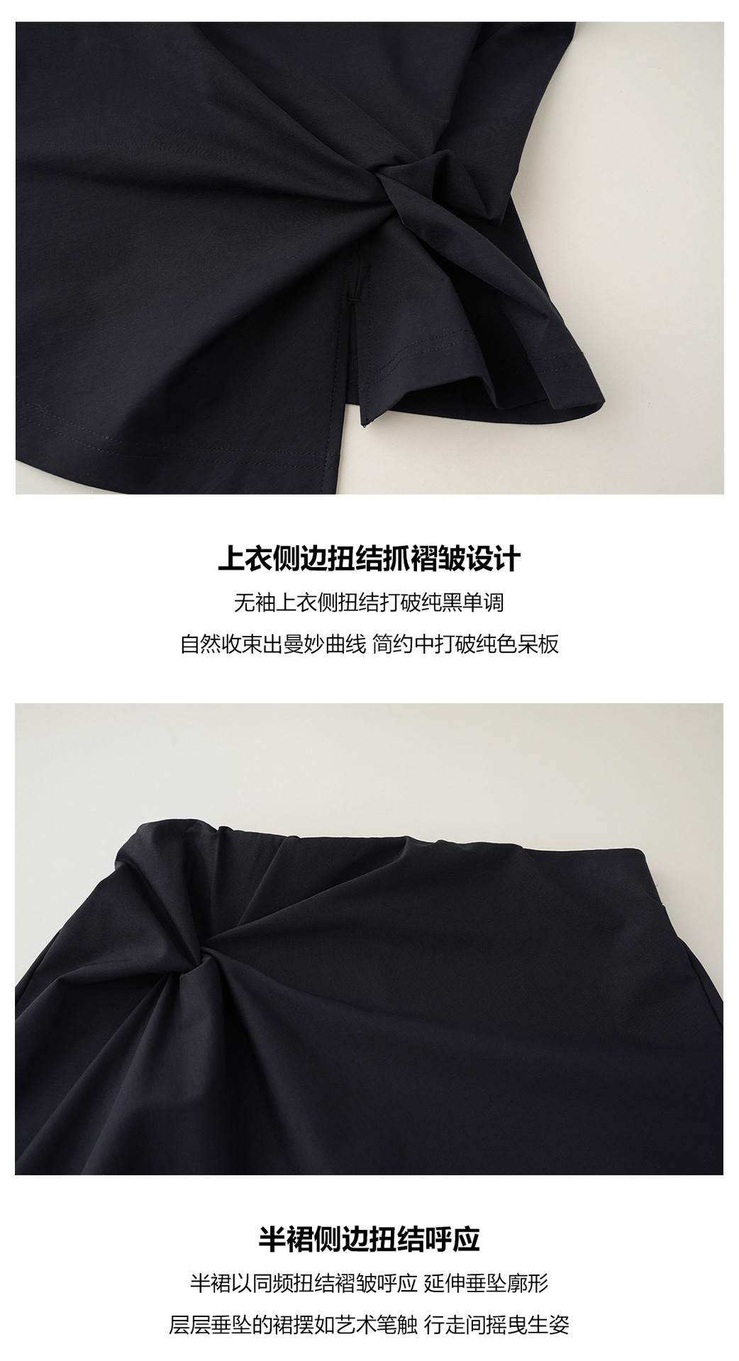 C 가족 슬림 핏 보트 칼라 잡아 주름 조끼 블랙 스커트 25 봄/여름 여성 세트 1272830001