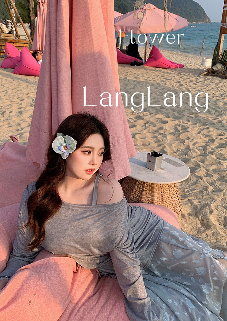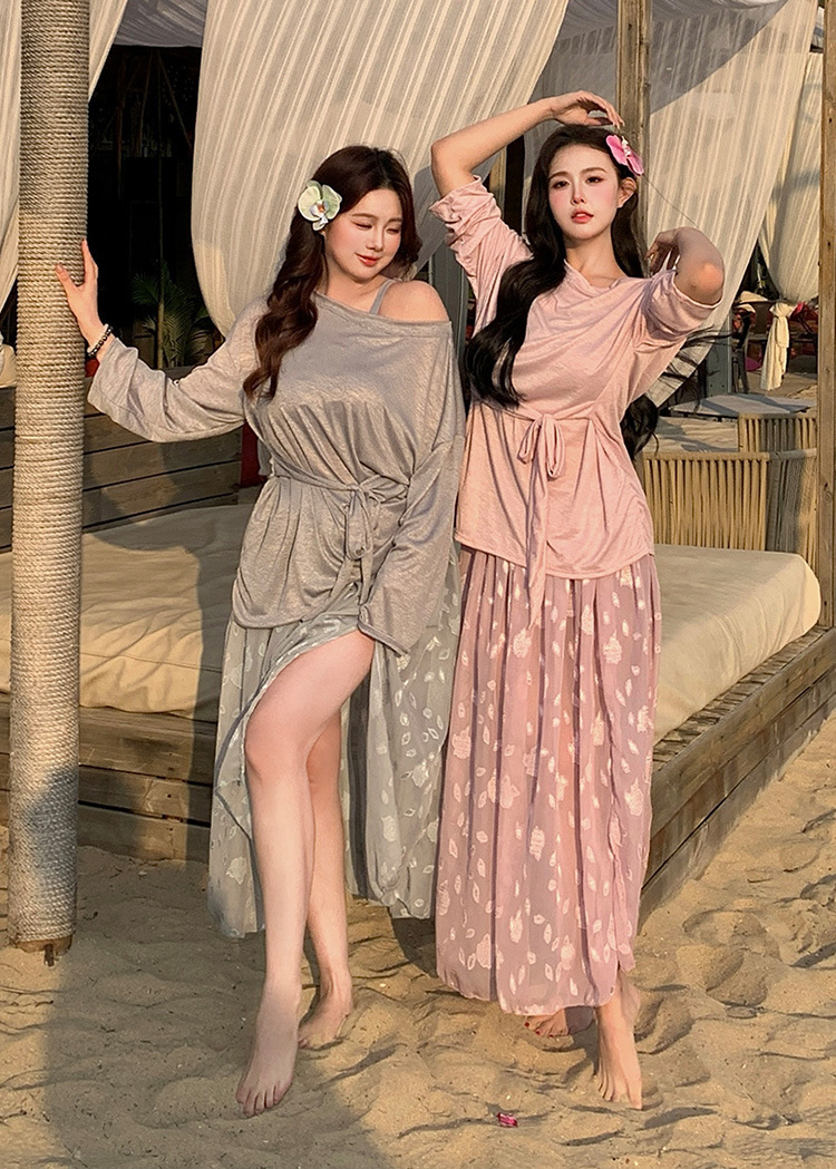 섹시한 롱 스커트 플러스 사이즈 수영복 뚱뚱한 소녀 mm 스플릿 비키니 4피스 세트로 살을 커버하고 해변 휴가를 더 날씬하게 보이게 해줍니다.