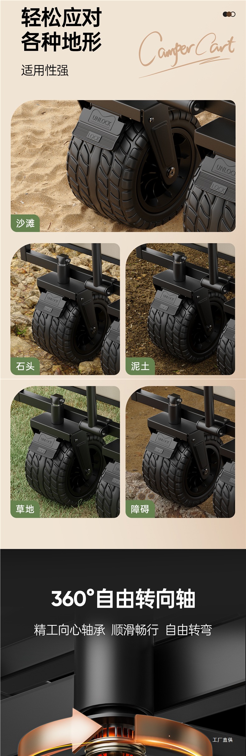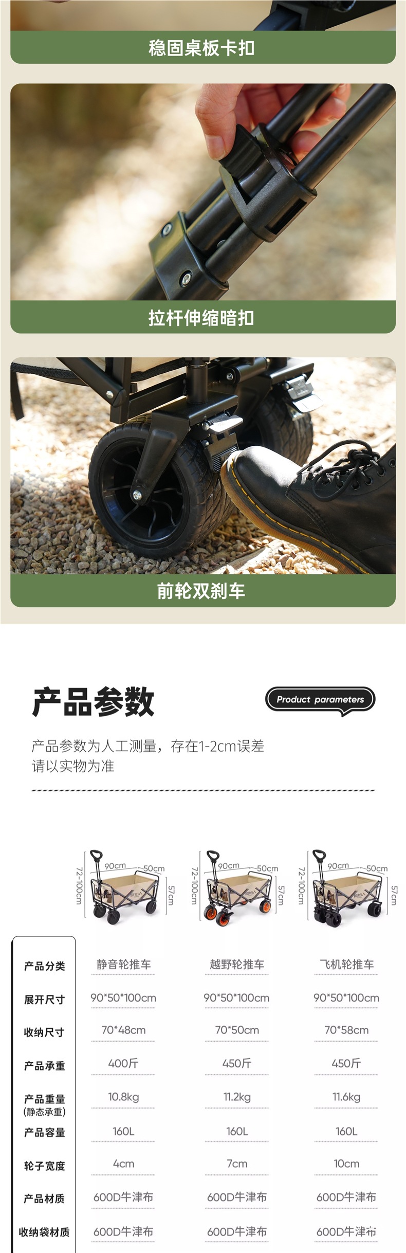 • 후면 개방형 [항공기 충격 흡수 모델 - 카키색]에는 이중 브레이크 + 충격 흡수 무소음 범용 휠 + 초대형 두꺼운 프레임이 함께 제공됩니다.