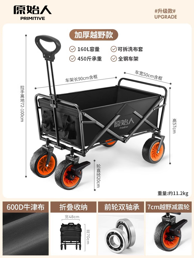 원시 캠핑 카트 캠프 트레일러 접이식 야외 여행 핸드 푸시 피크닉 트롤리 캠핑 핸드 카트스토어 가기