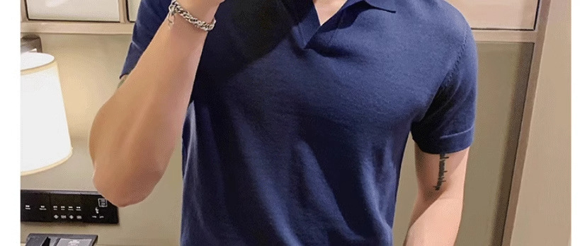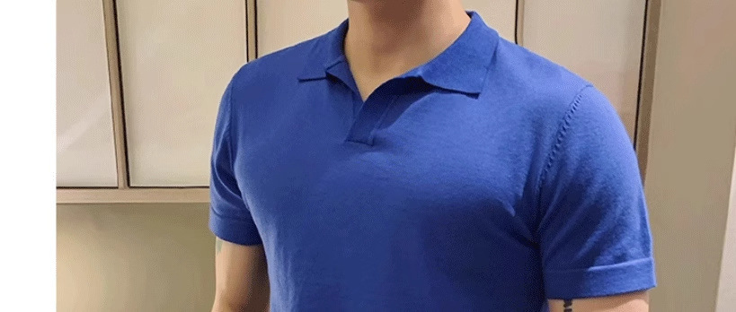 하이 퀄리티 남성 여름 솔리드 컬러 경량 니트웨어 캐주얼 릴에디션 폴로 셔츠 반팔 티셔츠 패션 반소매 Z스토어 가기