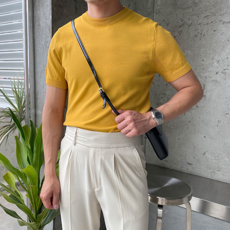 하이 퀄리티 남성 여름 솔리드 컬러 경량 니트웨어 캐주얼 릴에디션 폴로 셔츠 반팔 티셔츠 패션 반소매 Z
