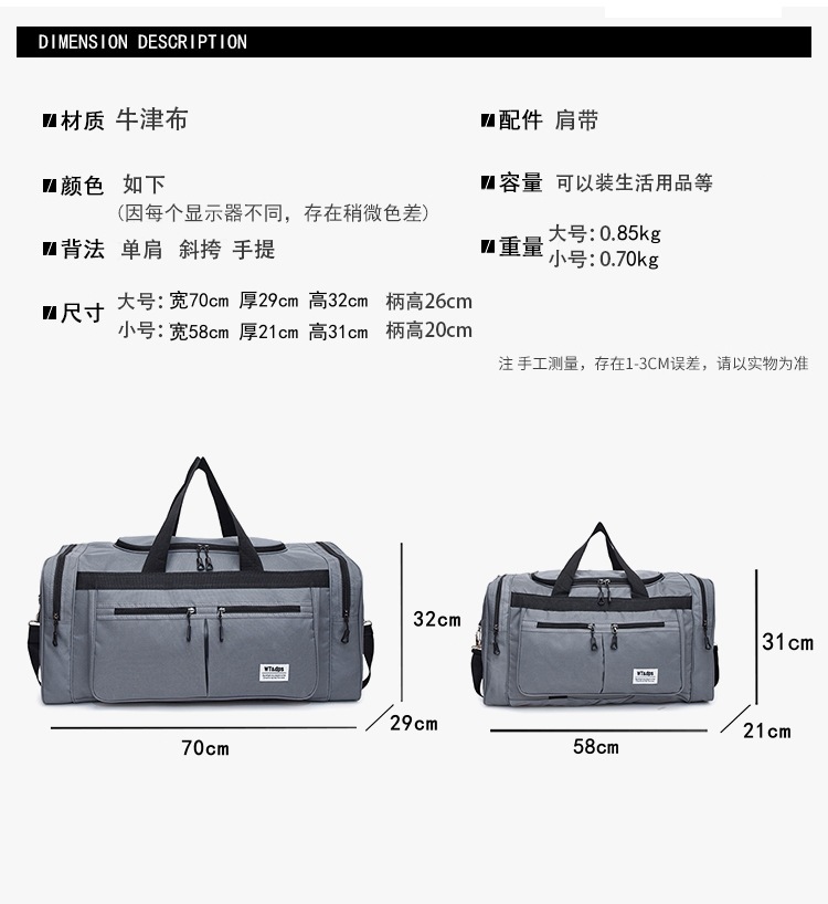 亲们一定要注意,这款旅行包是用来装衣服之类的行李的,要根据包包的容量装东西,不要装的鼓鼓囊囊的,装不下了还使劲的往里面塞,那样容易把拉链撑坏。