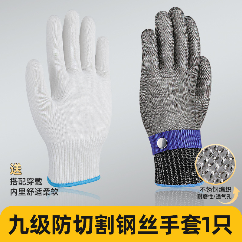 • 9등급 베임 방지 강철 와이어 장갑 1개