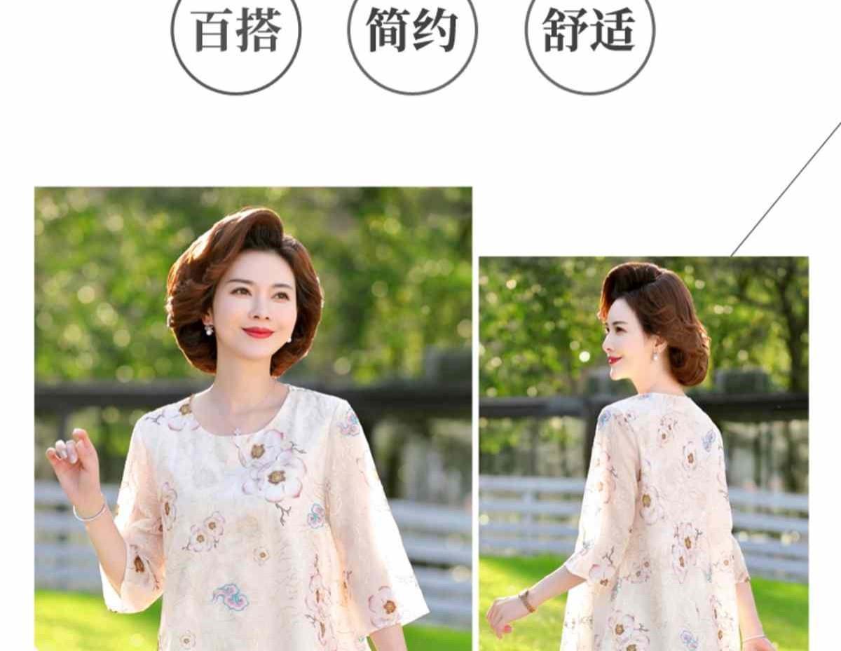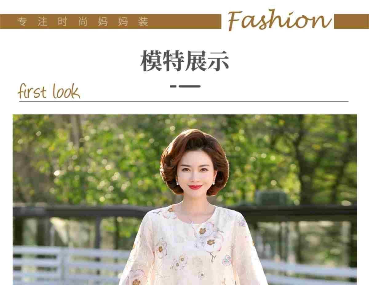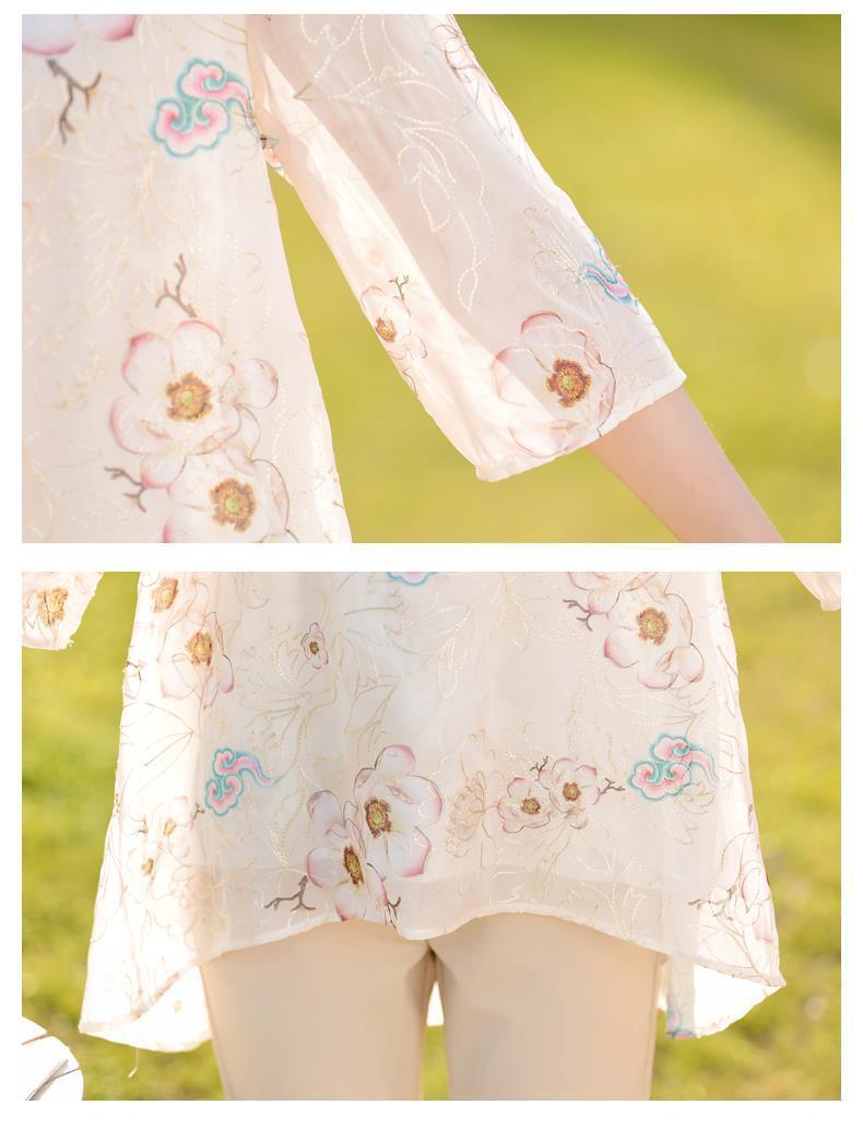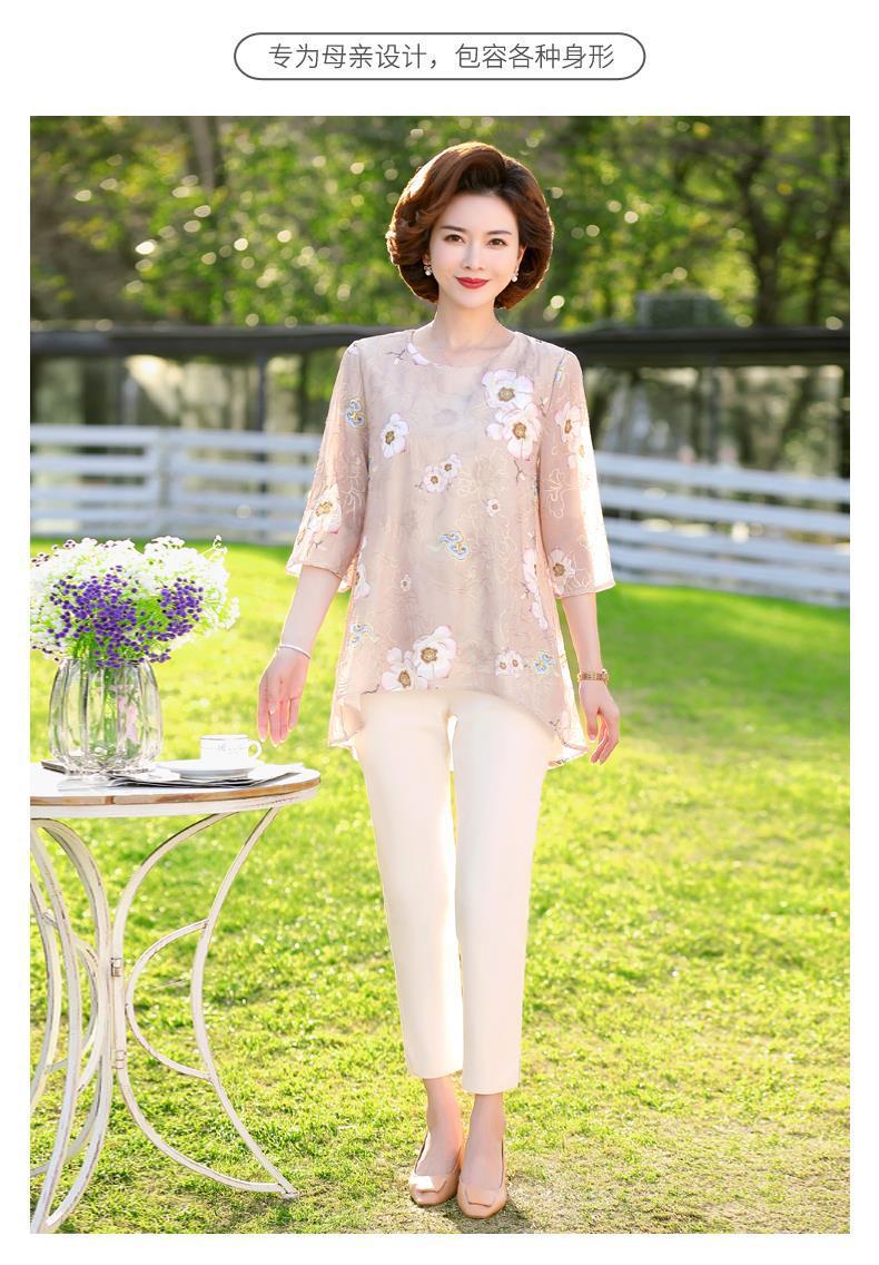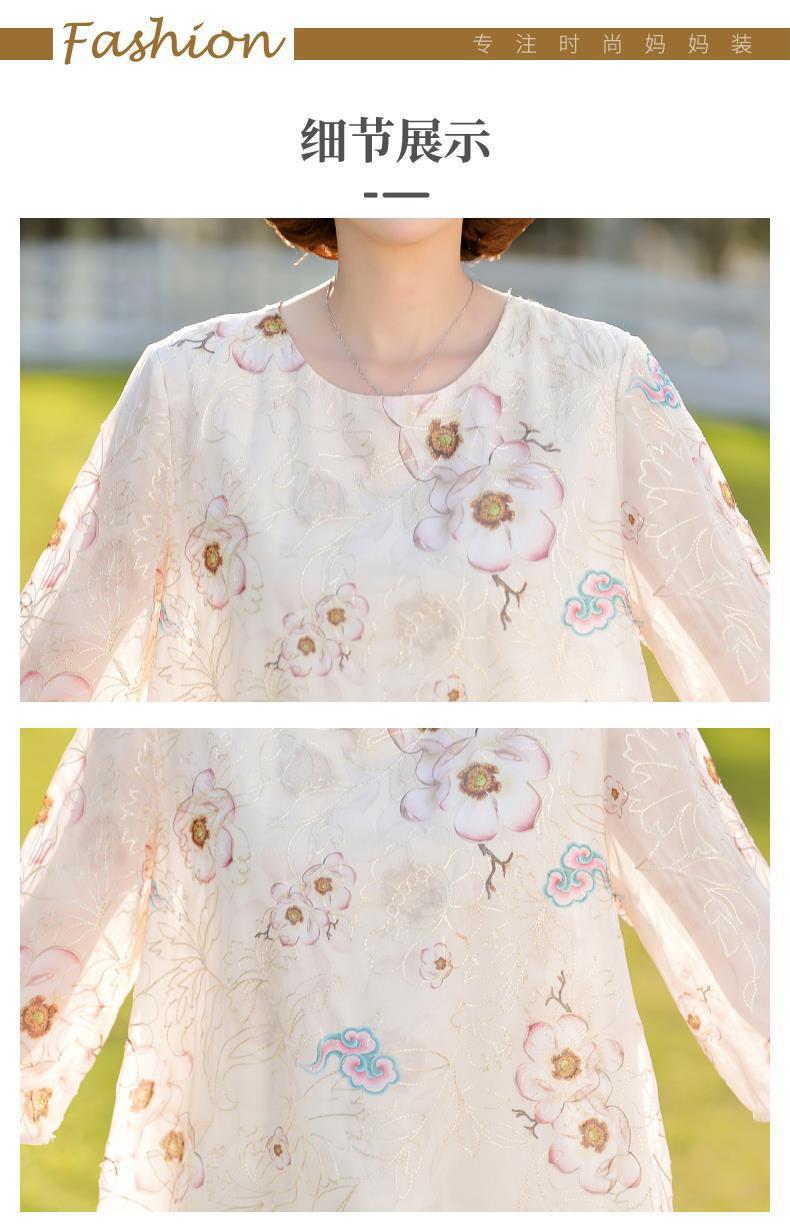 45-110kg 엄마 라운드 넥 쉬폰 셔츠 탑 메쉬 자수 느슨한 여름 살 커버 한국 스타일 프린트 셔츠 여성용스토어 가기