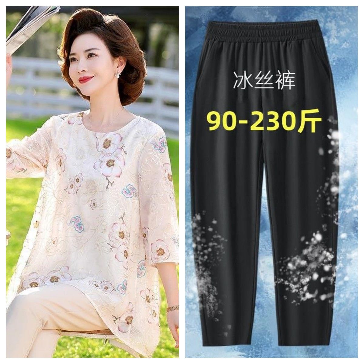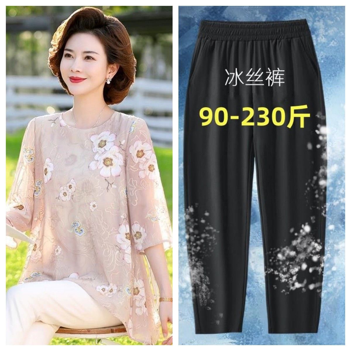 • 살구탑 + 블랙 아이스실크 9점팬츠