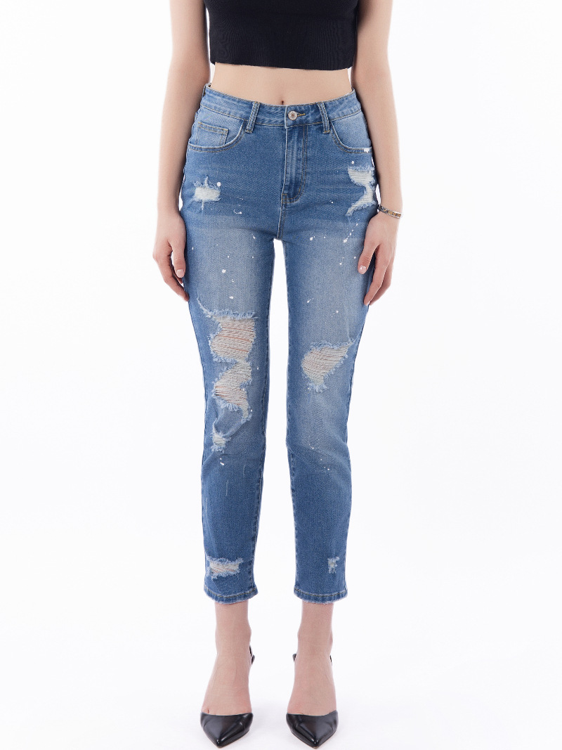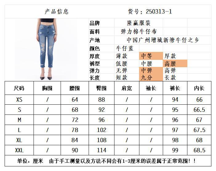 유럽과 미국의 플러스 사이즈 패션 슬림핏 높은 허리 슬리밍 엉덩이 레깅스 바지 찢어진 탄성 청바지 여성용 국경 머리스토어 가기